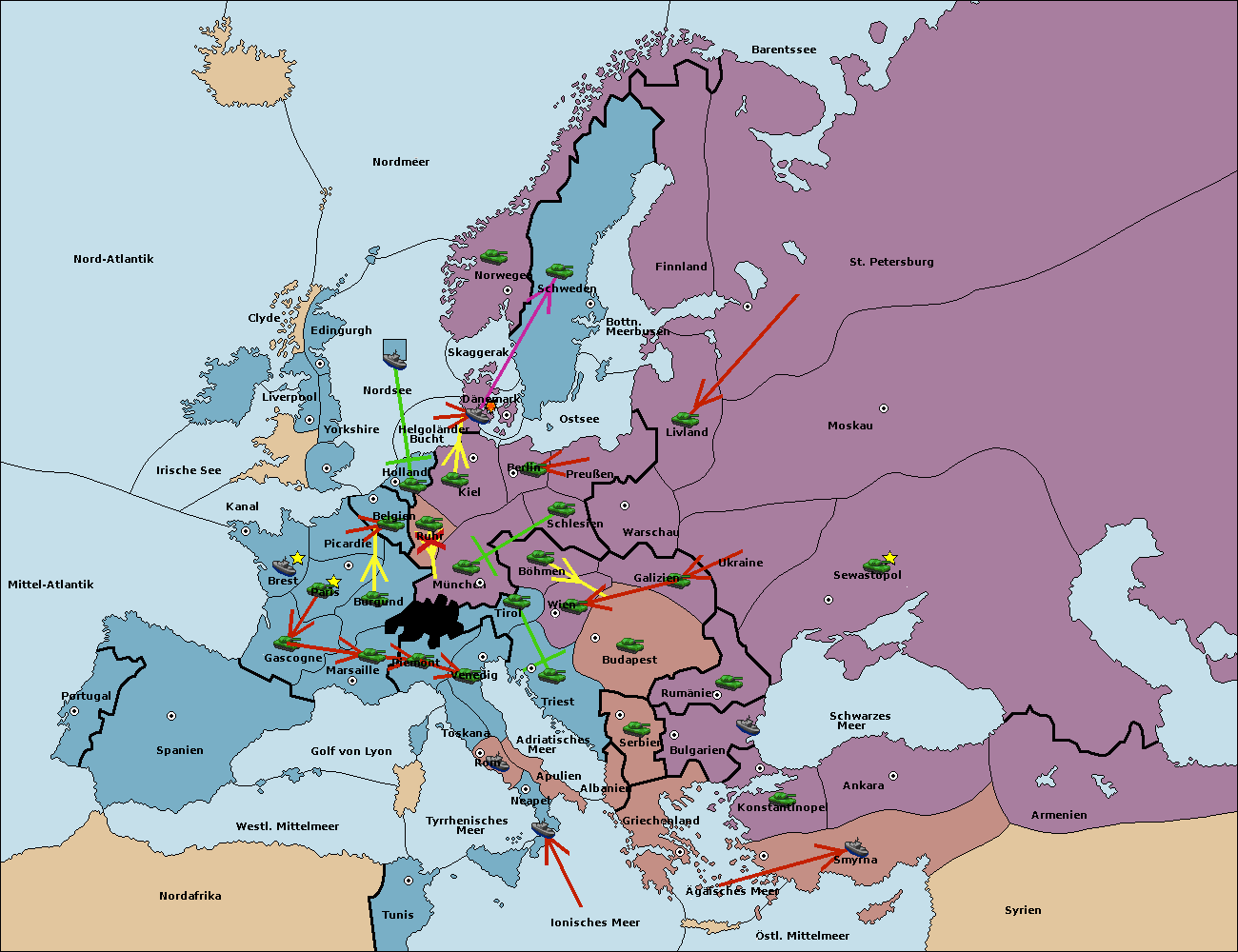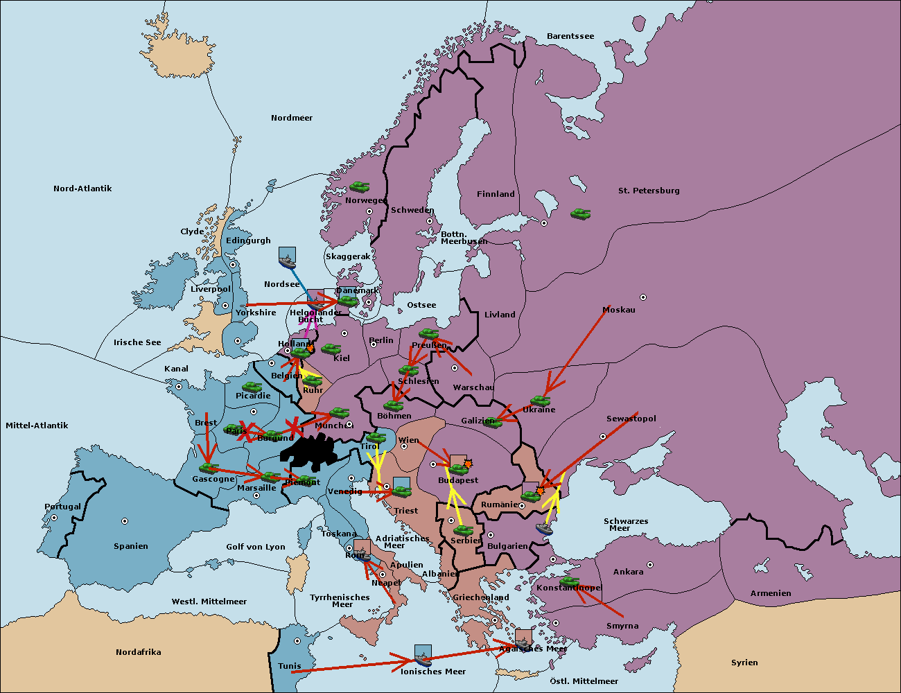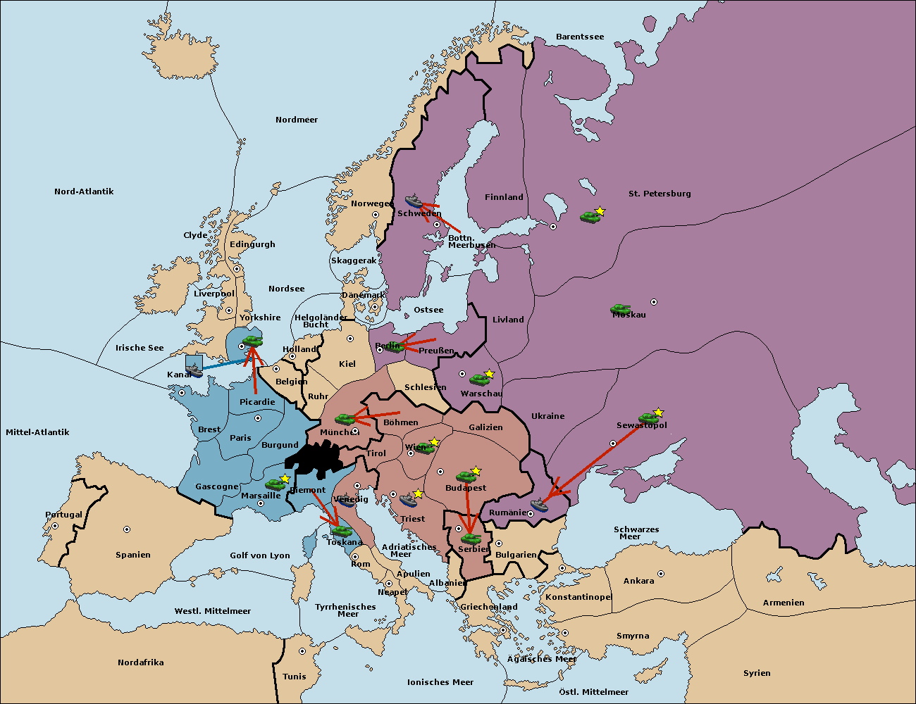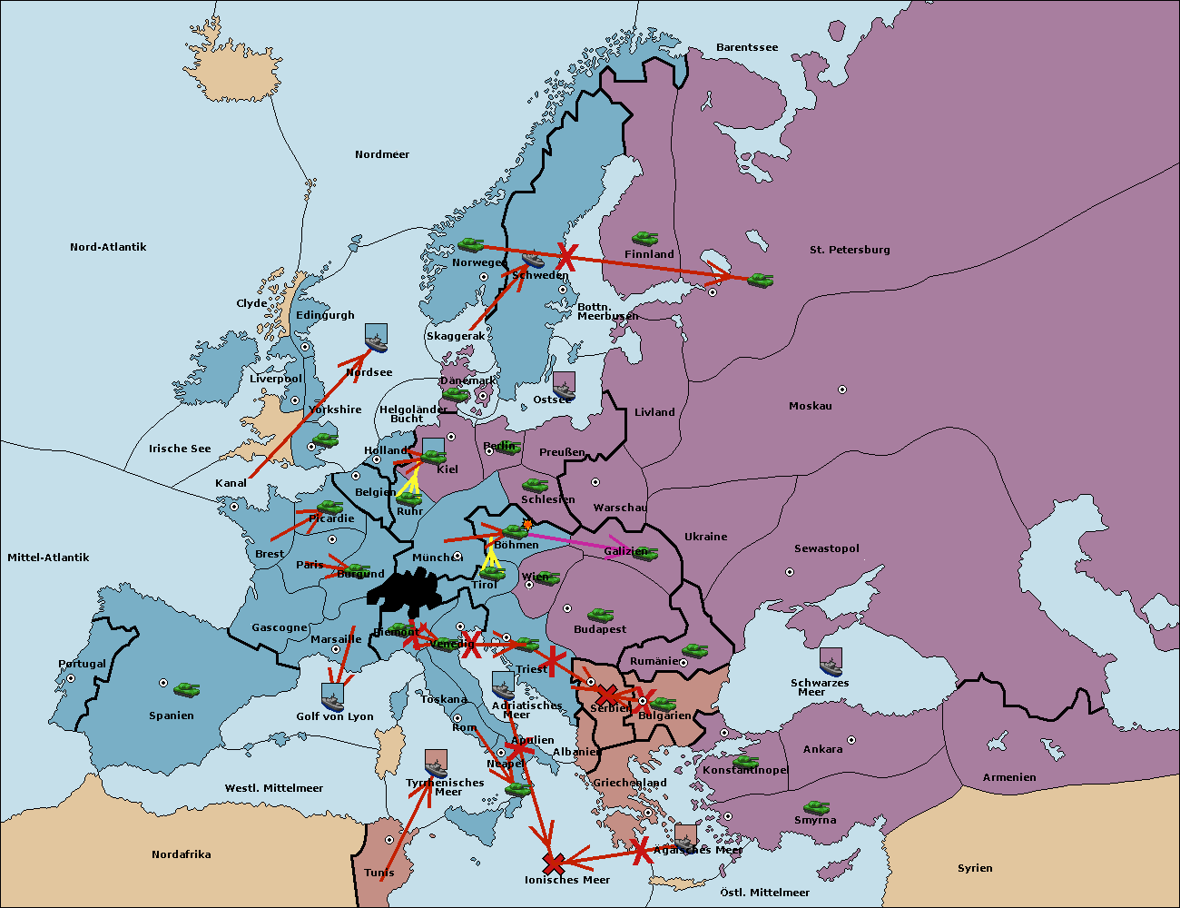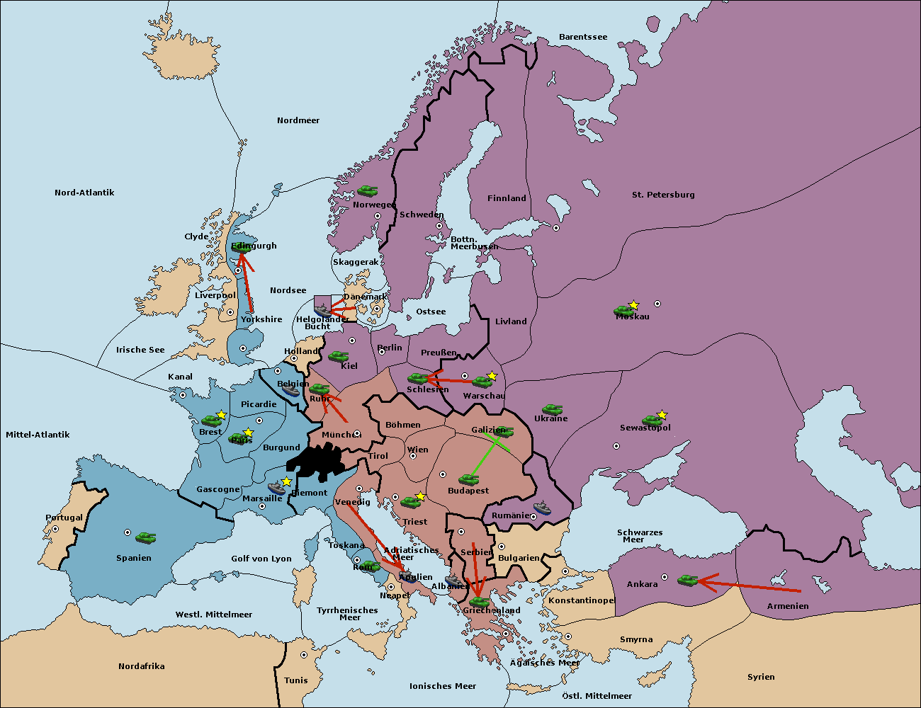 • Die Armee in Bulgarien wird zerstörtFlotte in Bulgarien gebaut.