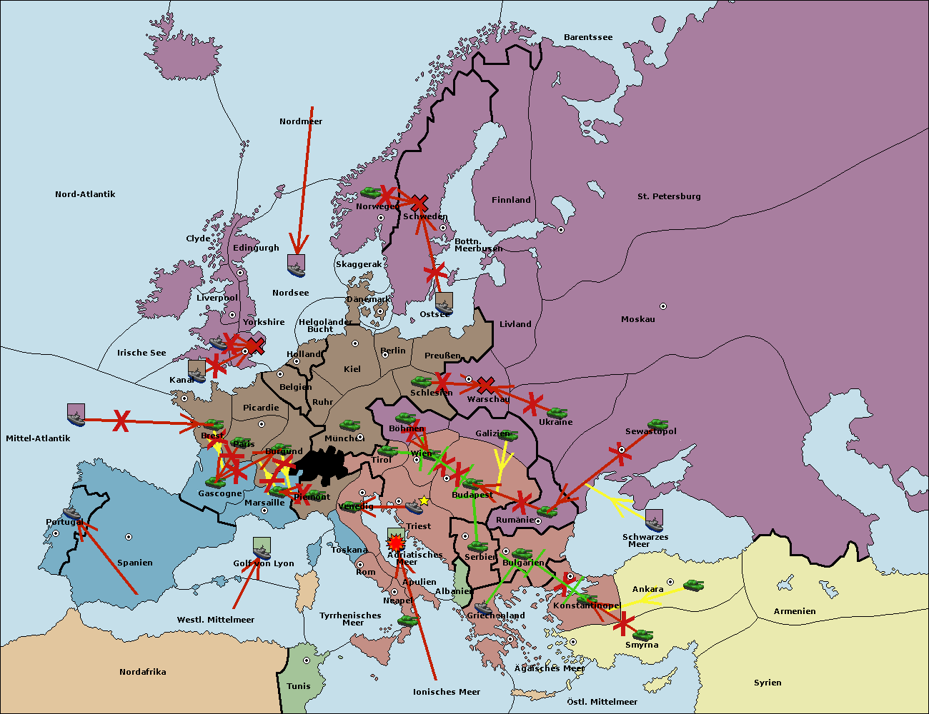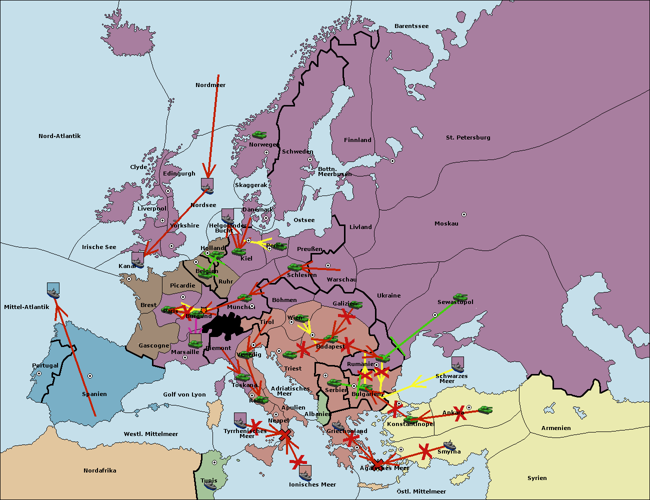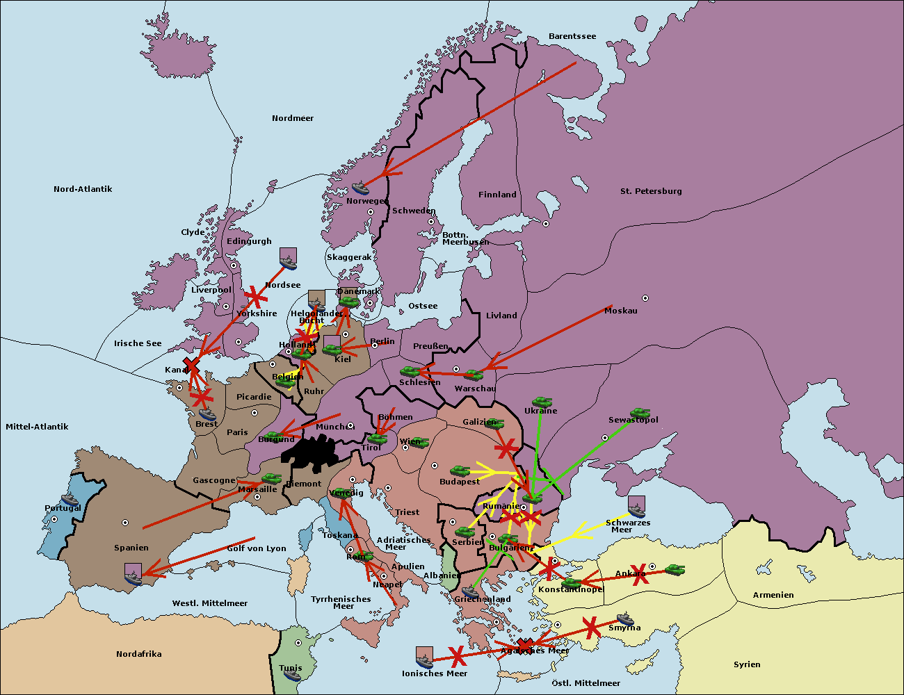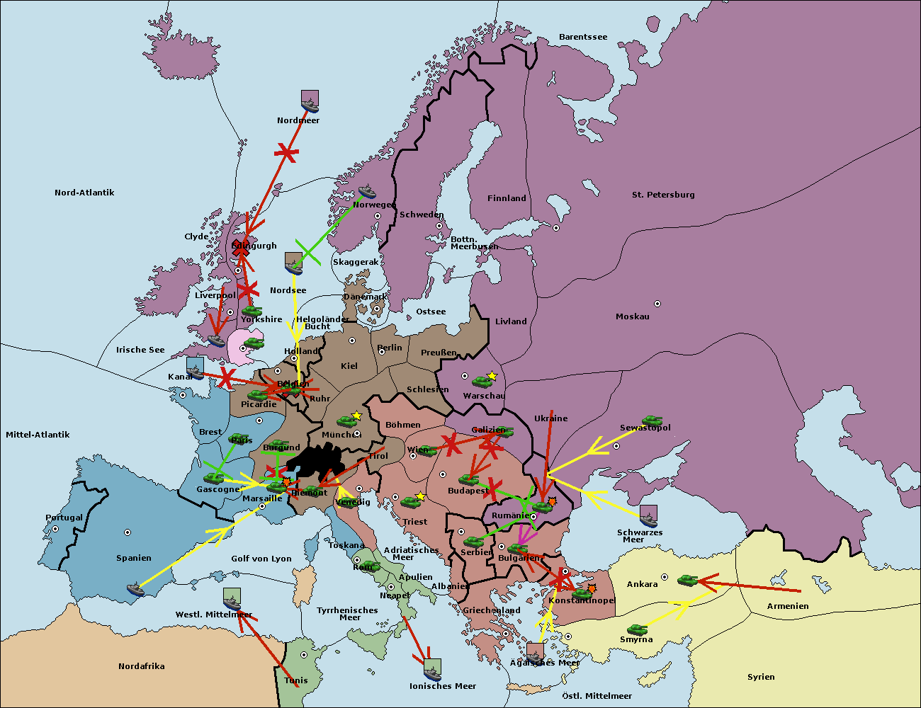 • Die Flotte in Schwarzes Meer support move nach Bulgarien von Rumänien. (gescheitert)