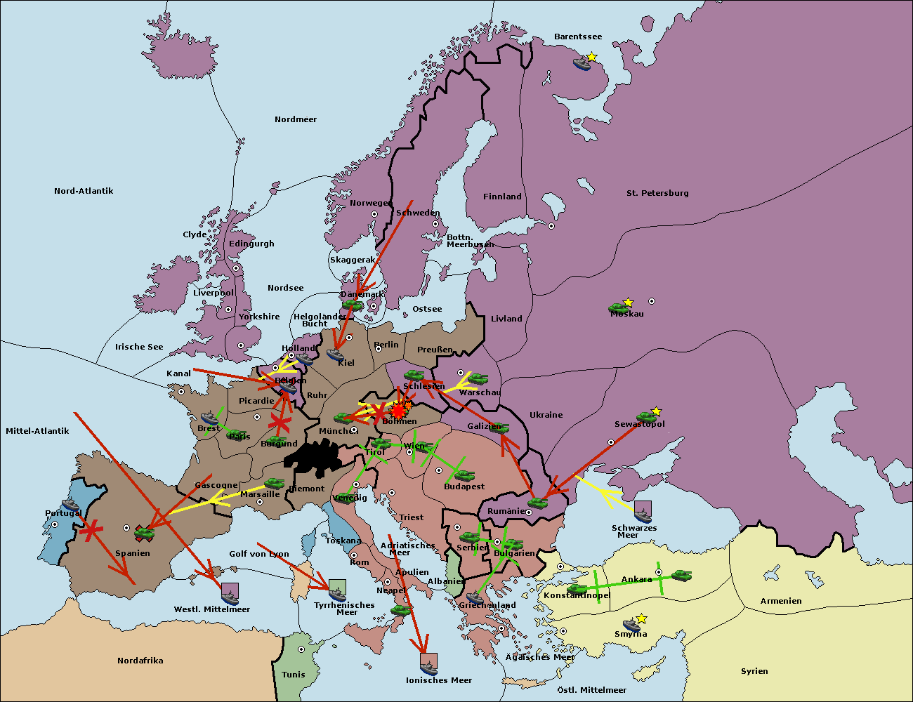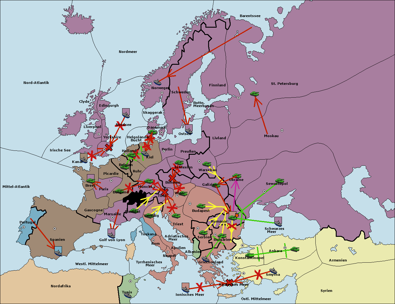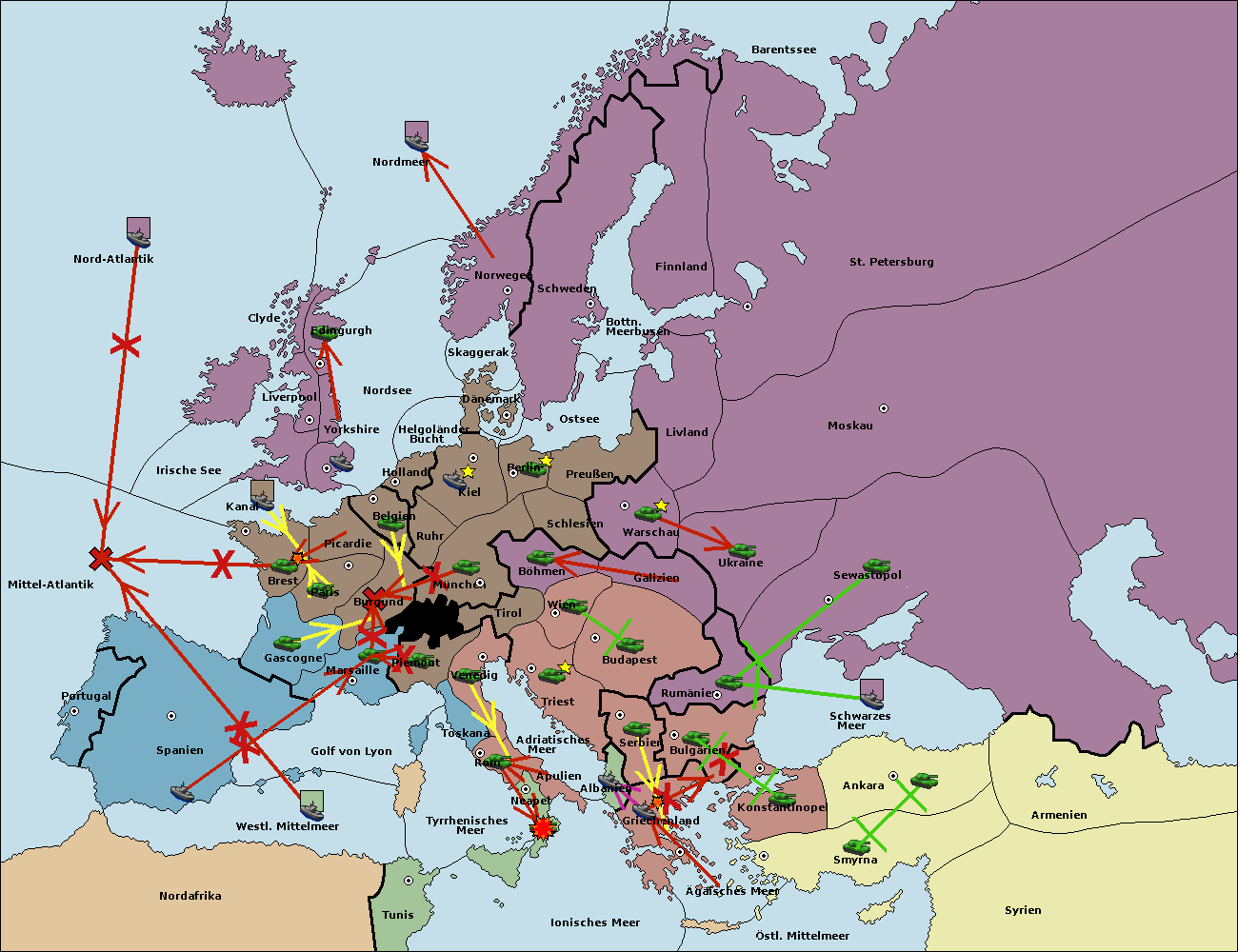 • Die Flotte in Schwarzes Meer support move nach Bulgarien von Rumänien. (gescheitert)
