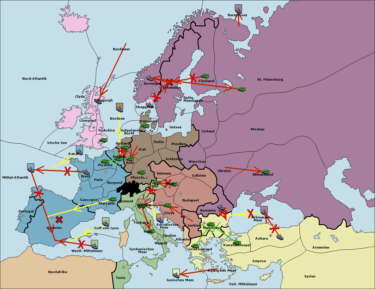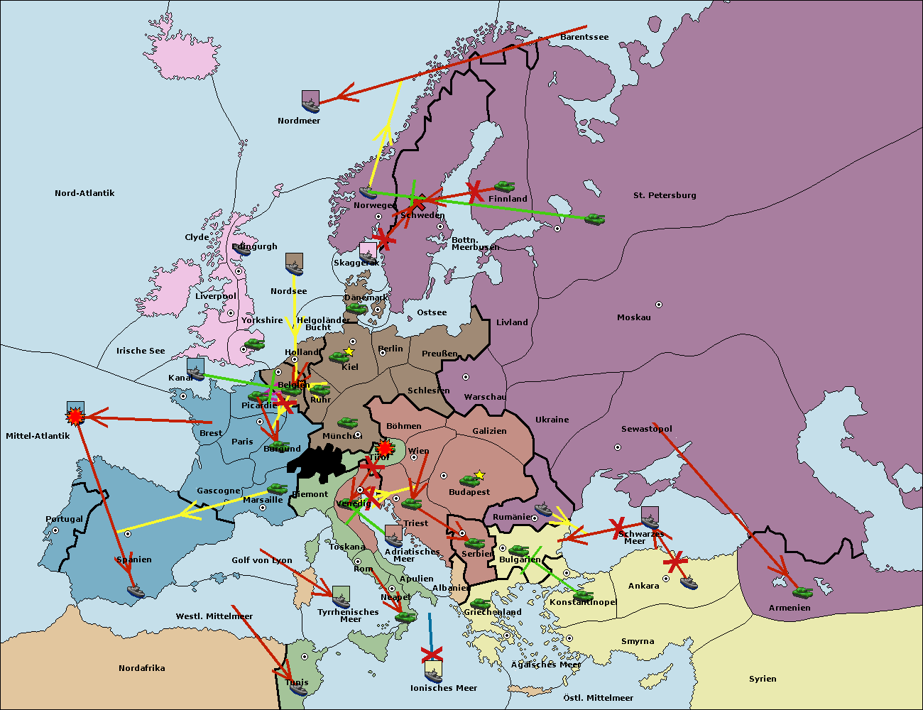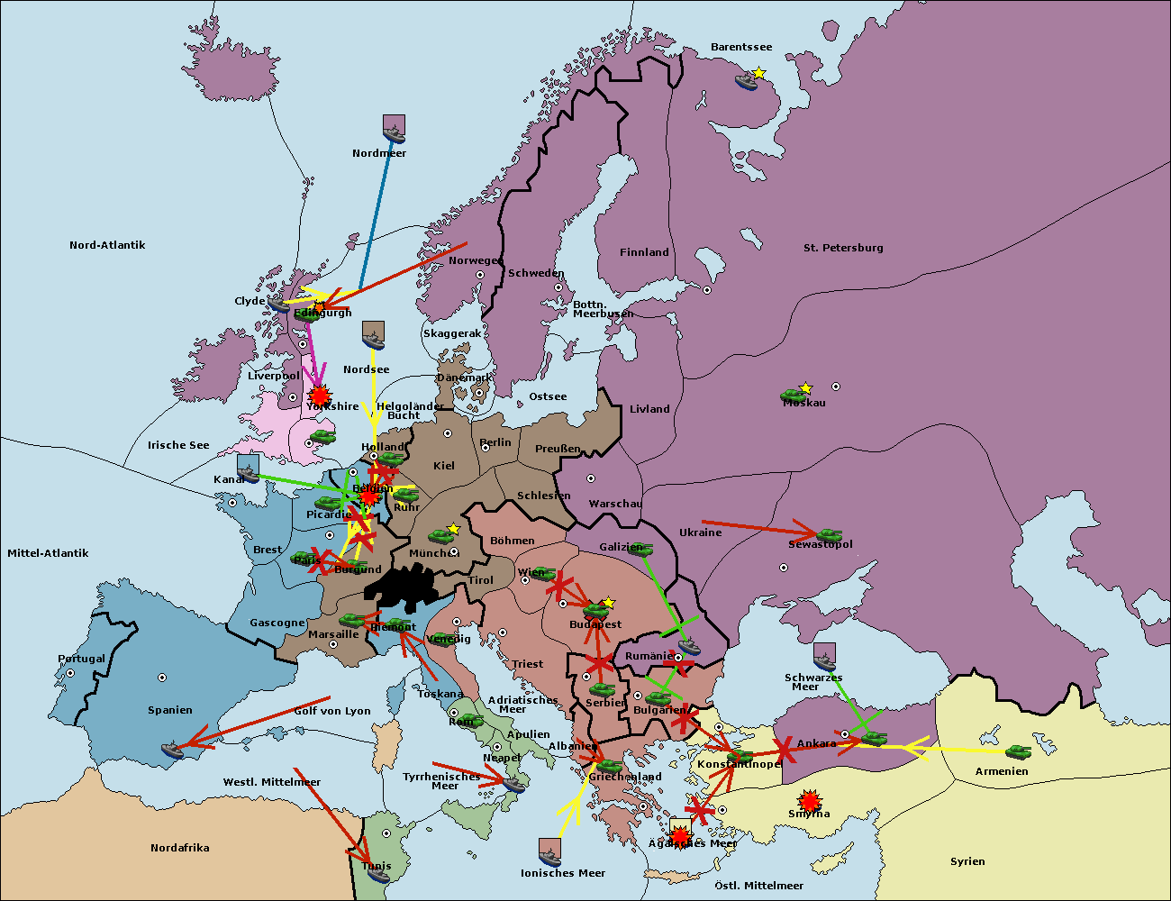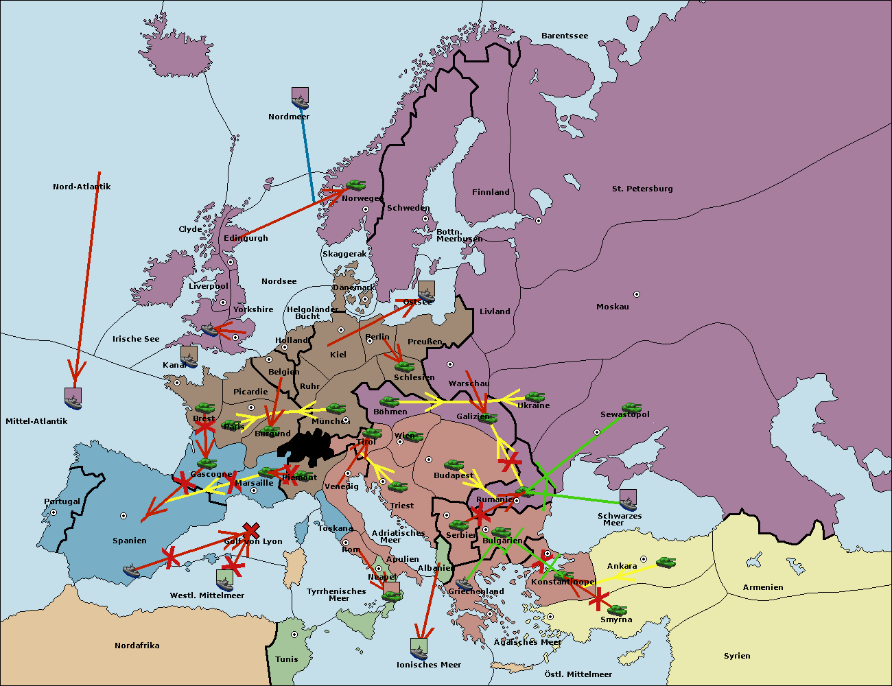 • Die Flotte in Schwarzes Meer support move nach Bulgarien von Rumänien. (gescheitert)