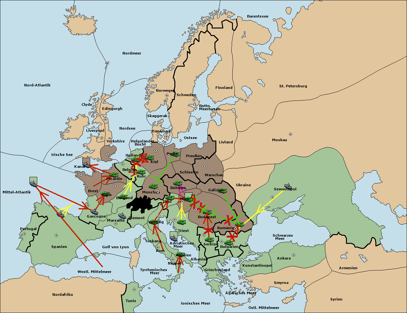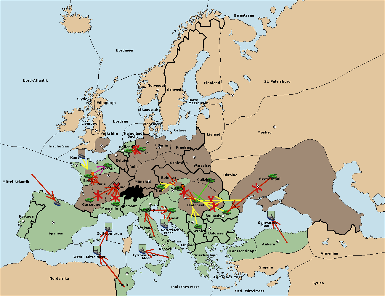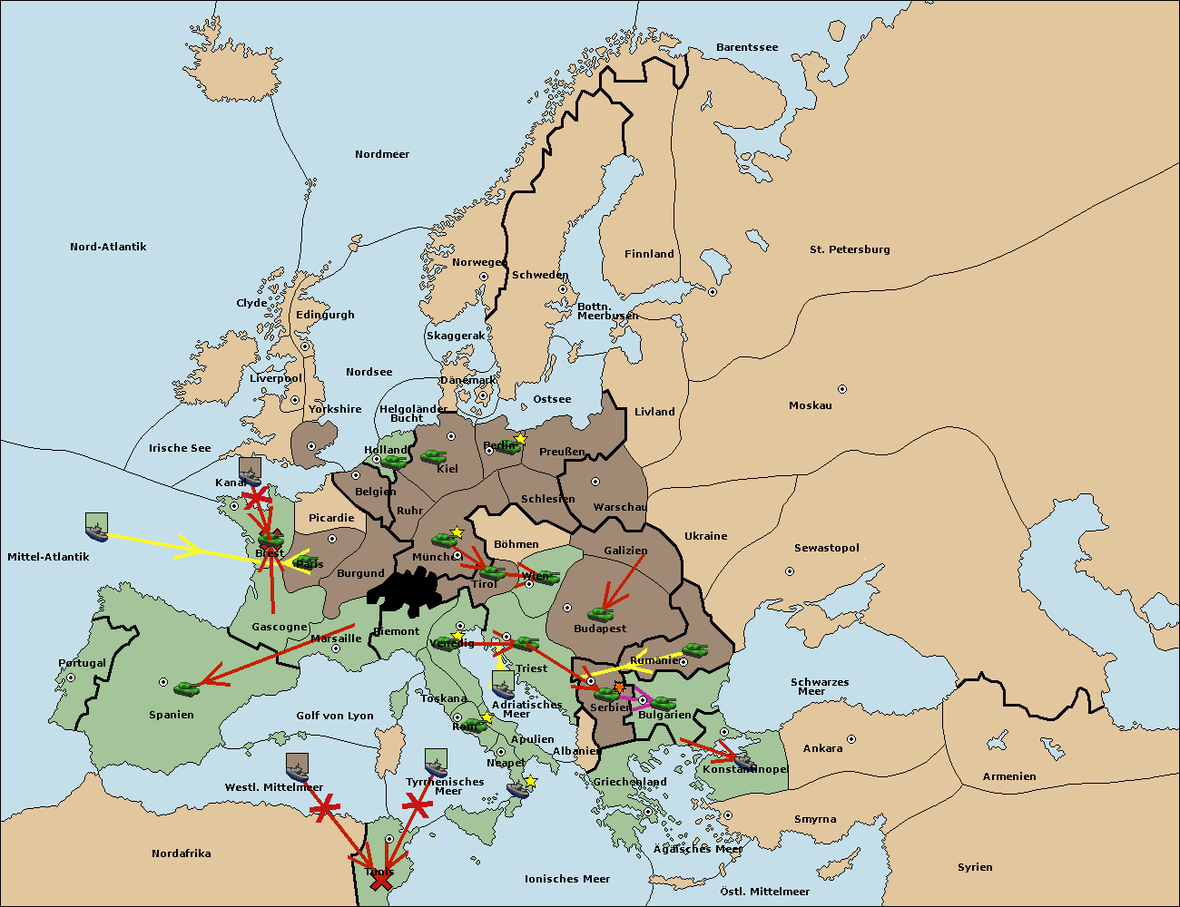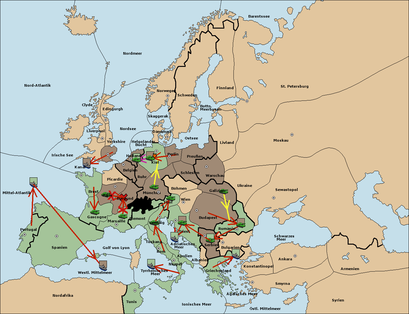 • Die Flotte in Spanien (Nordküste) support move nach Mittel-Atlantik von westl. Mittelmeer.