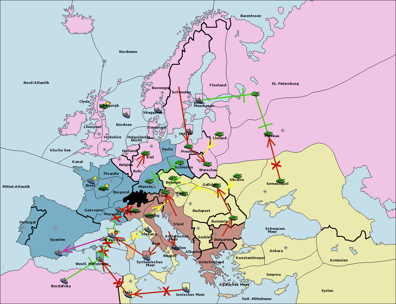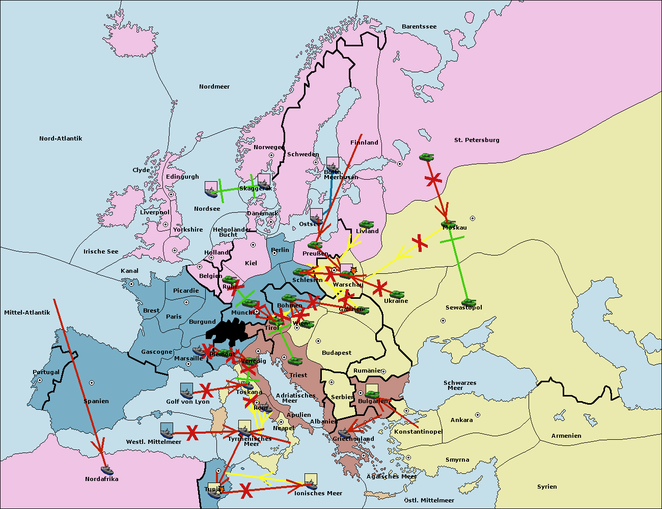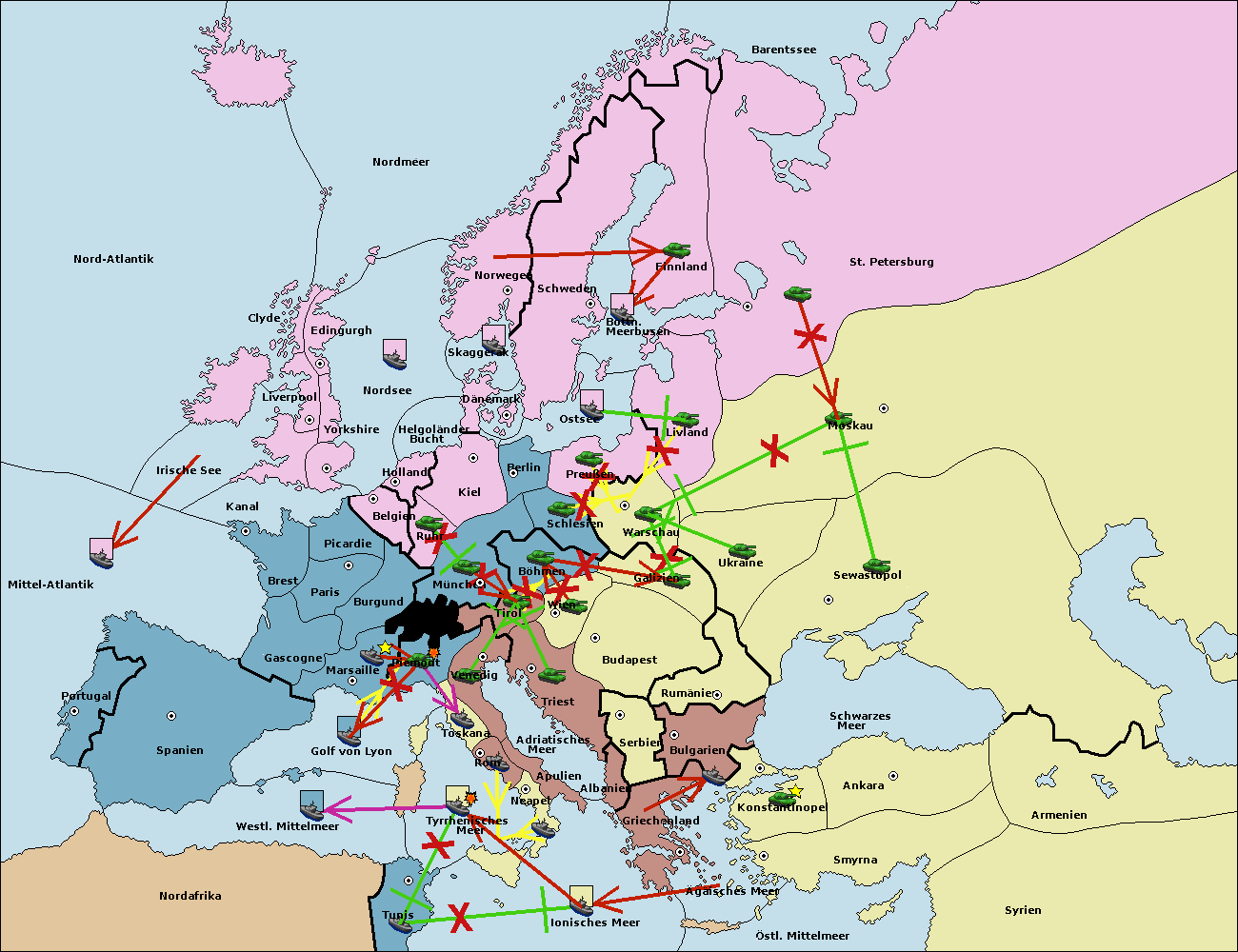 • Die Flotte in Nord Afrika support hold nach westl. Mittelmeer.