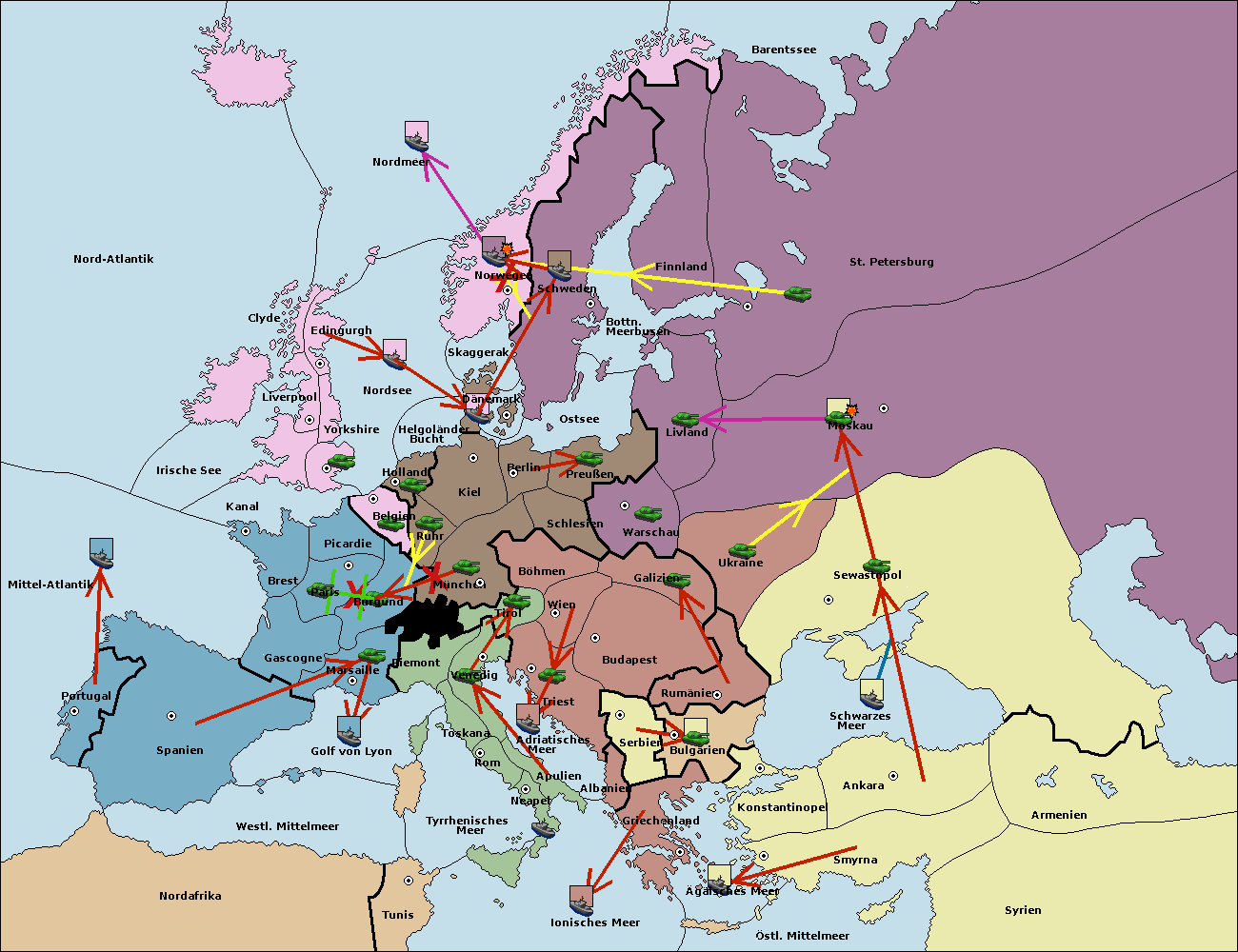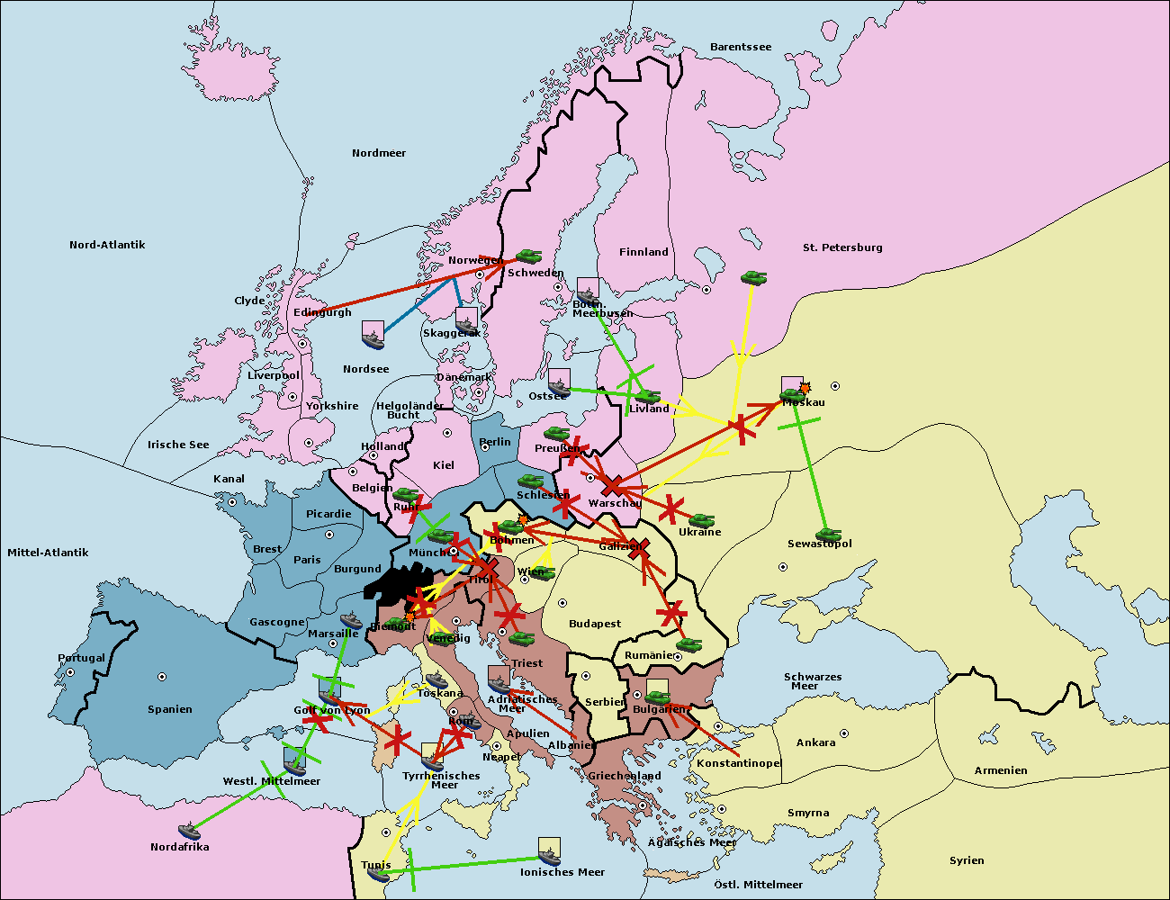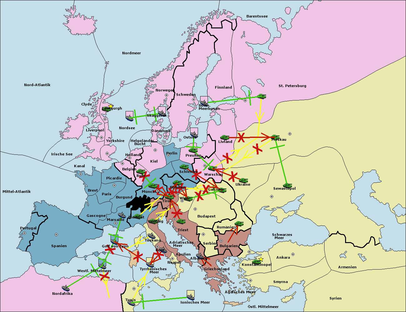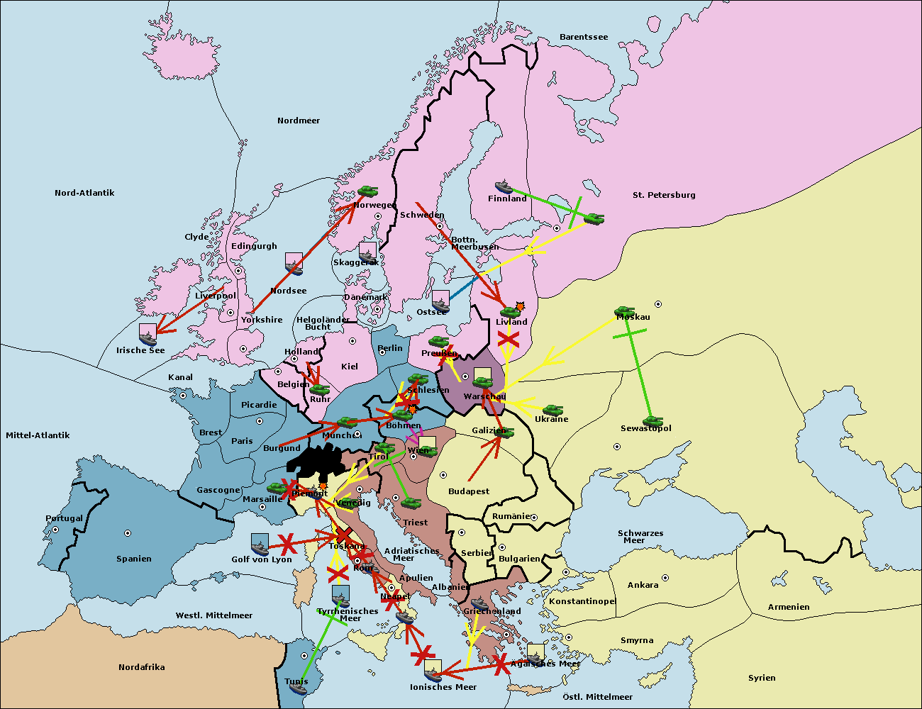 • Die Flotte in Nord Afrika support hold nach westl. Mittelmeer.
