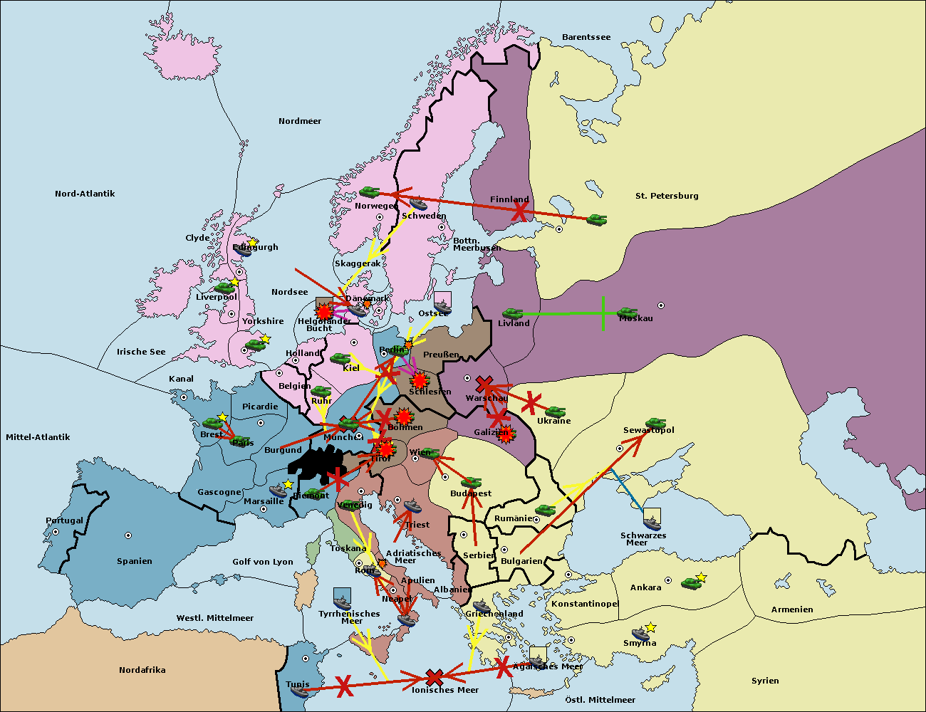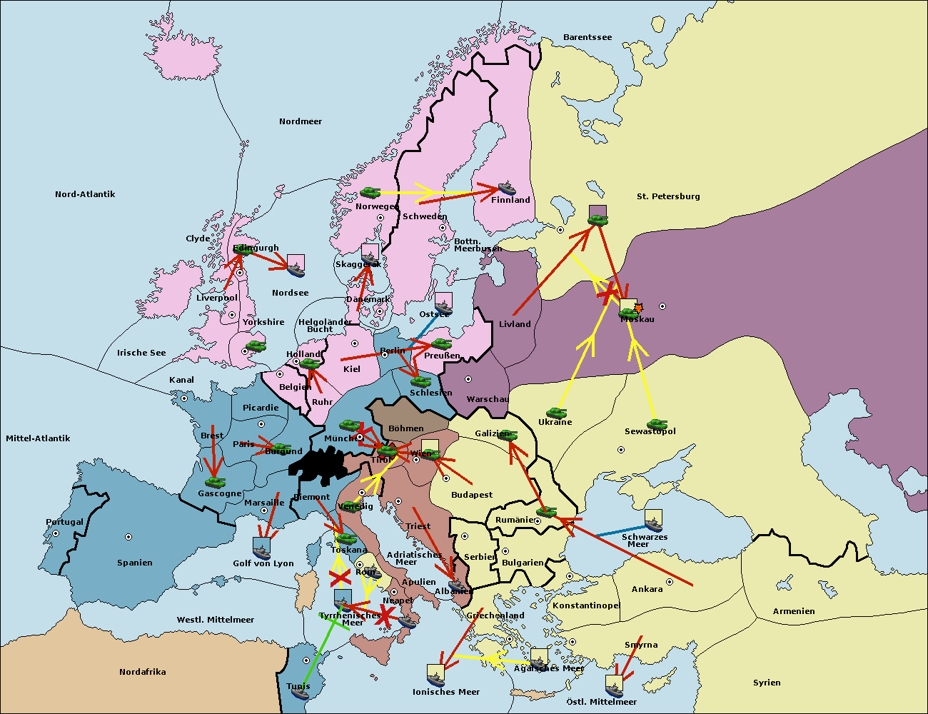 • Die Armee in Warschau support move nach Moskau von Livland. (gescheitert)