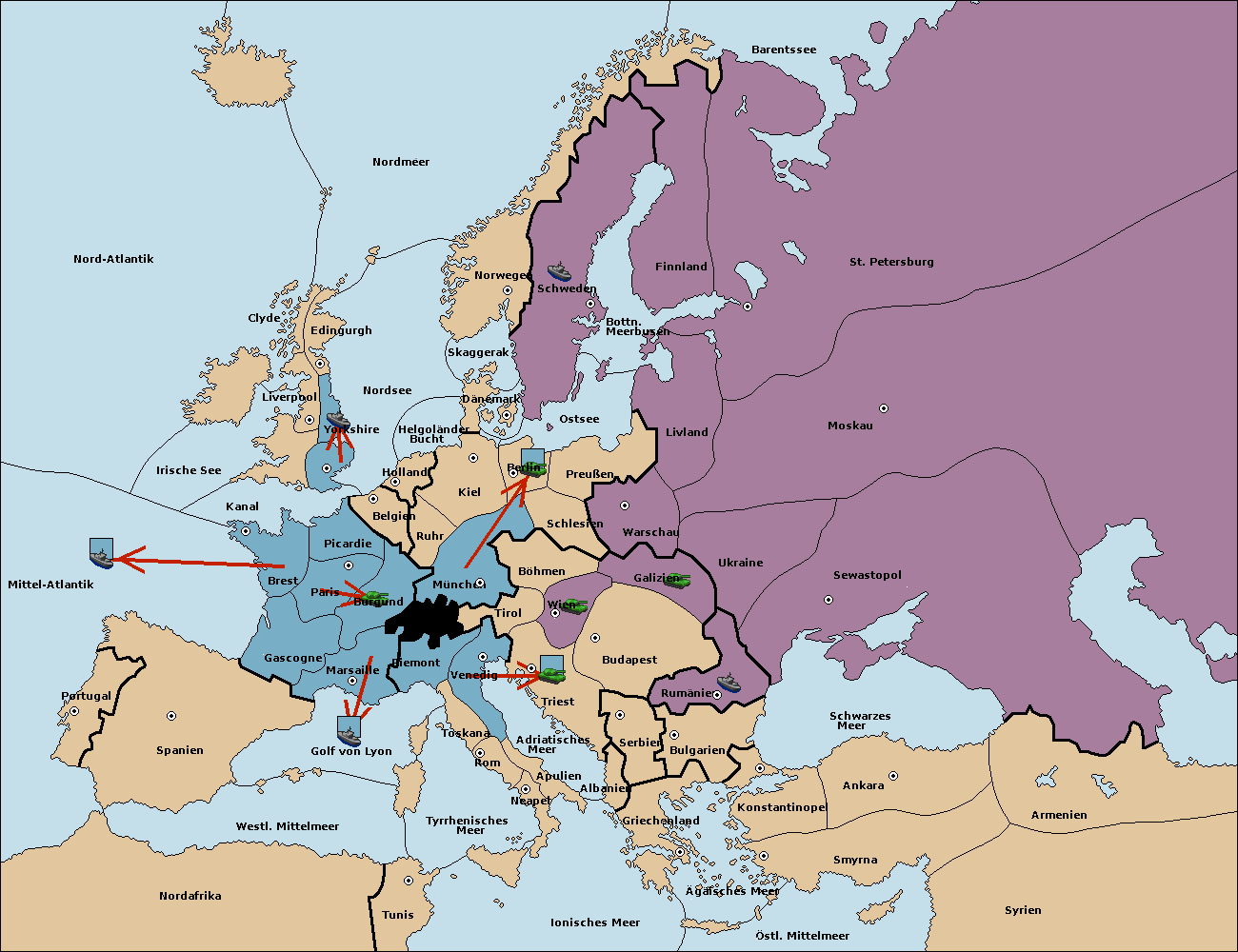 • Die Flotte in Mittel-Atlantik move nach Kanal.