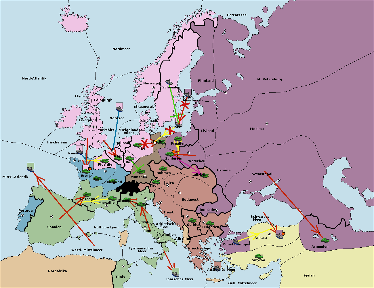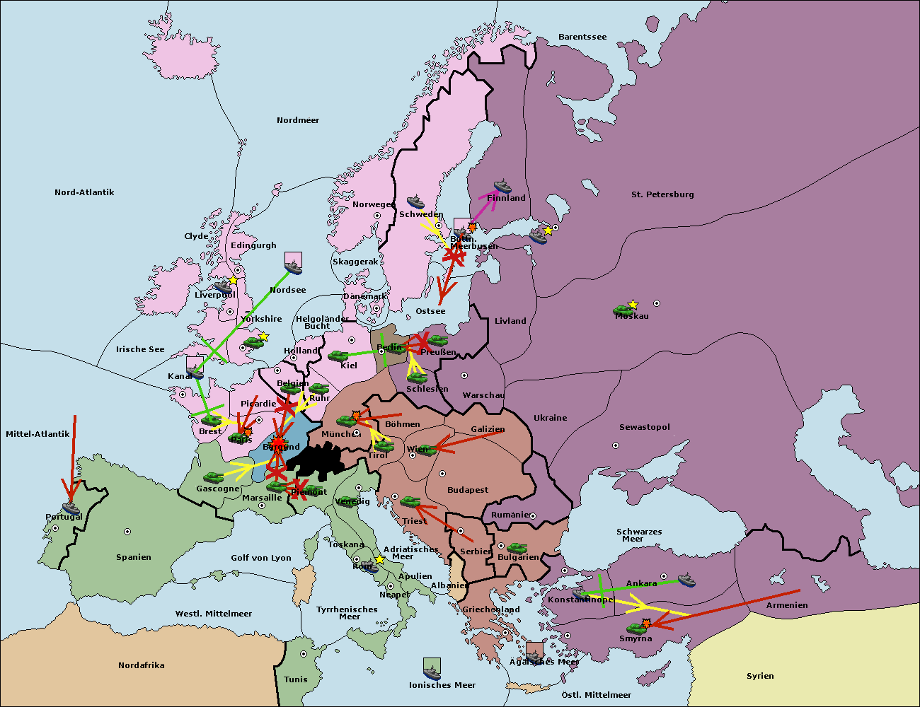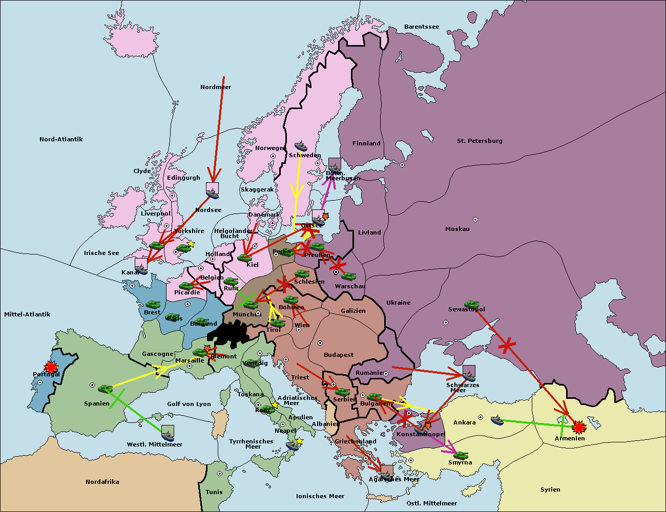 • Die Armee in Bulgarien wird zerstörtFlotte in Bulgarien gebaut.