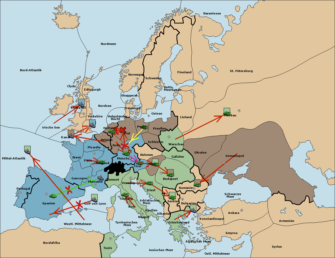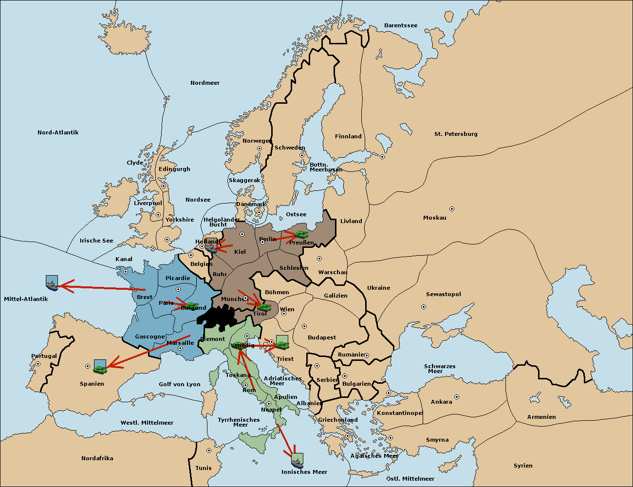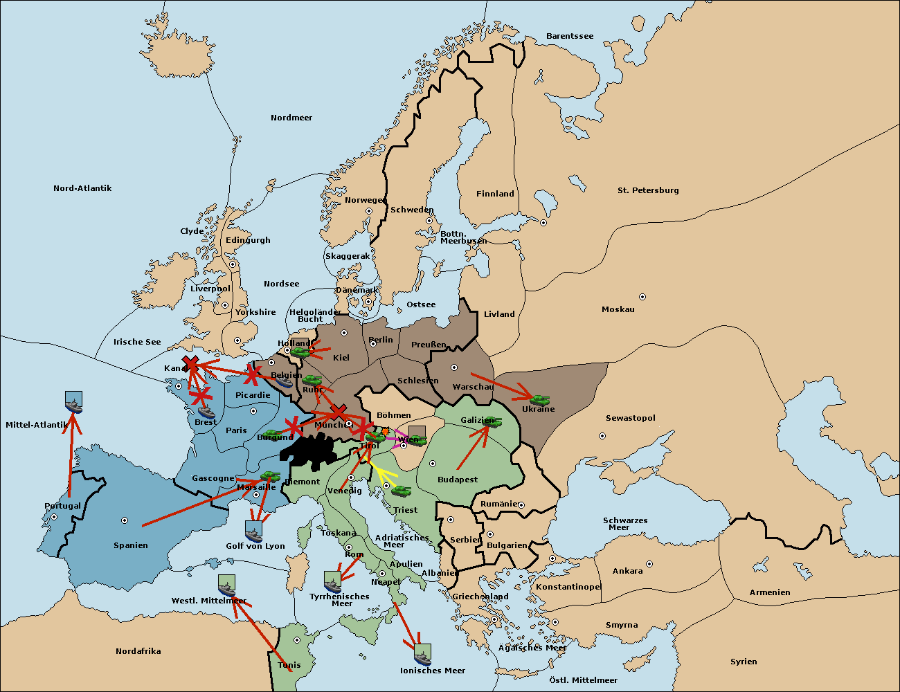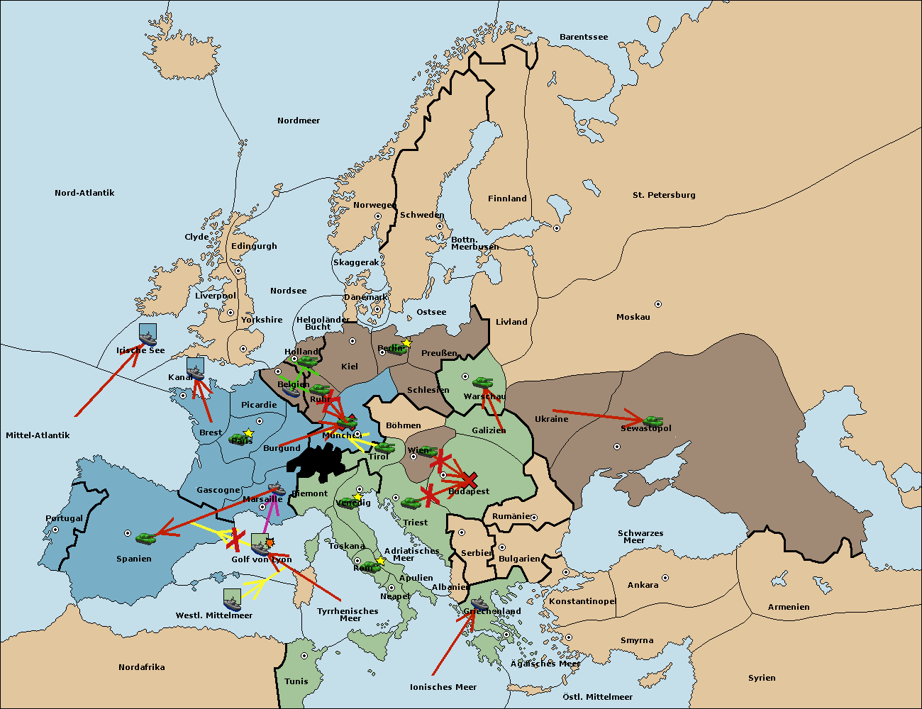 • Die Flotte in Marseille support hold nach Spanien. (gescheitert)