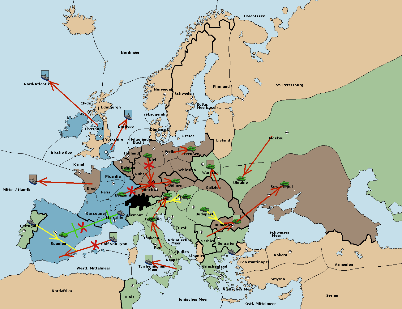 • Die Armee in München move nach Kiel. (gescheitert) (verdrängt)