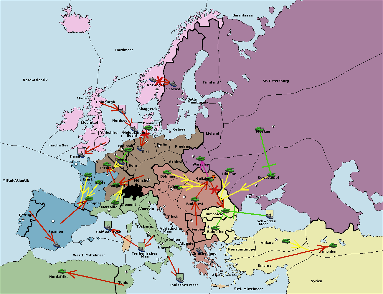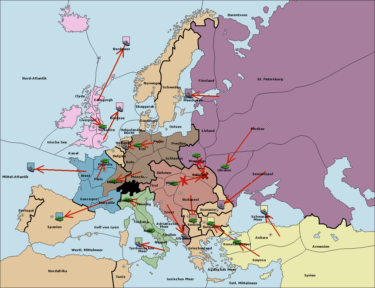 • Die Armee in Wien support move nach Galizien von Budapest.