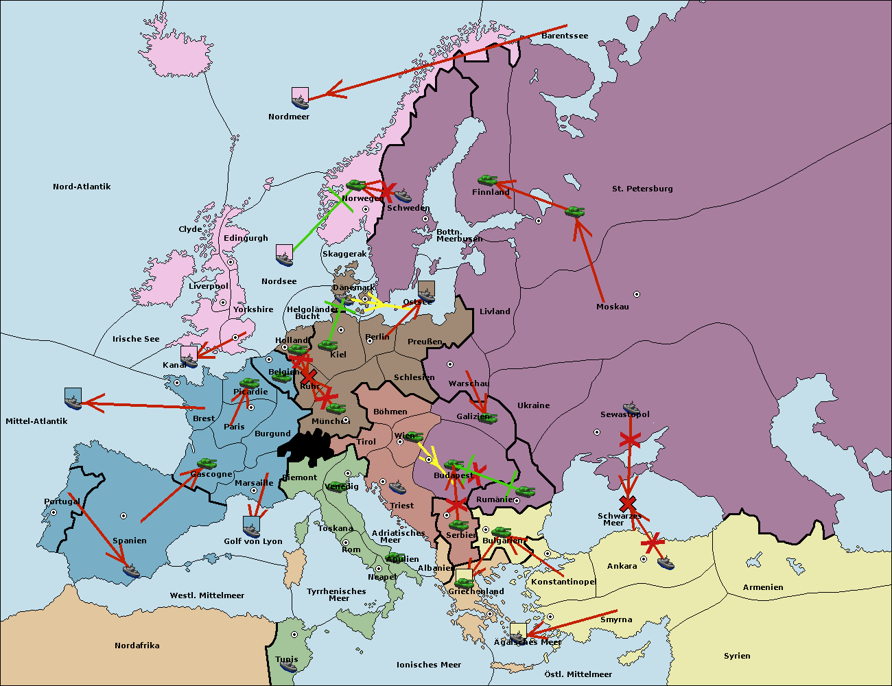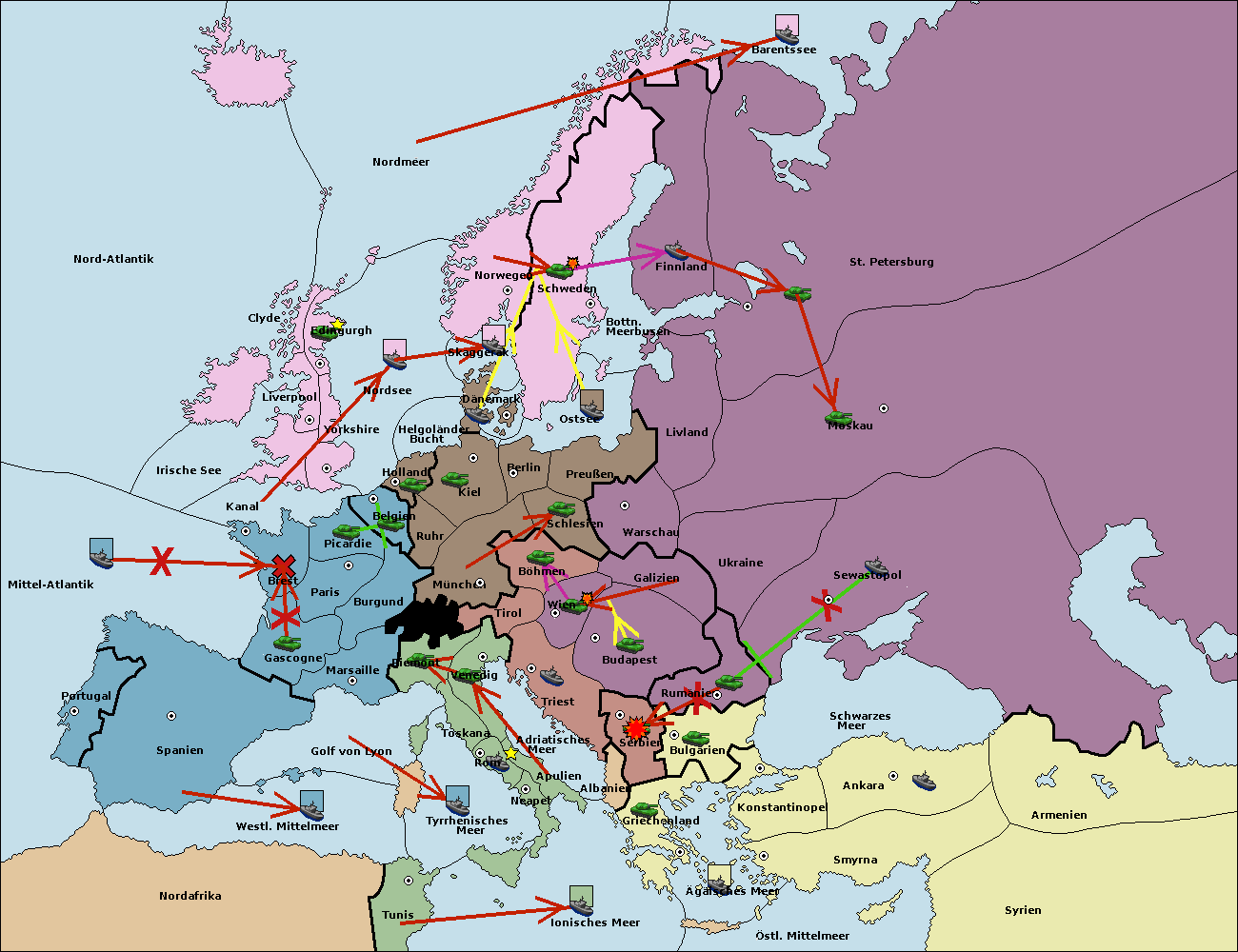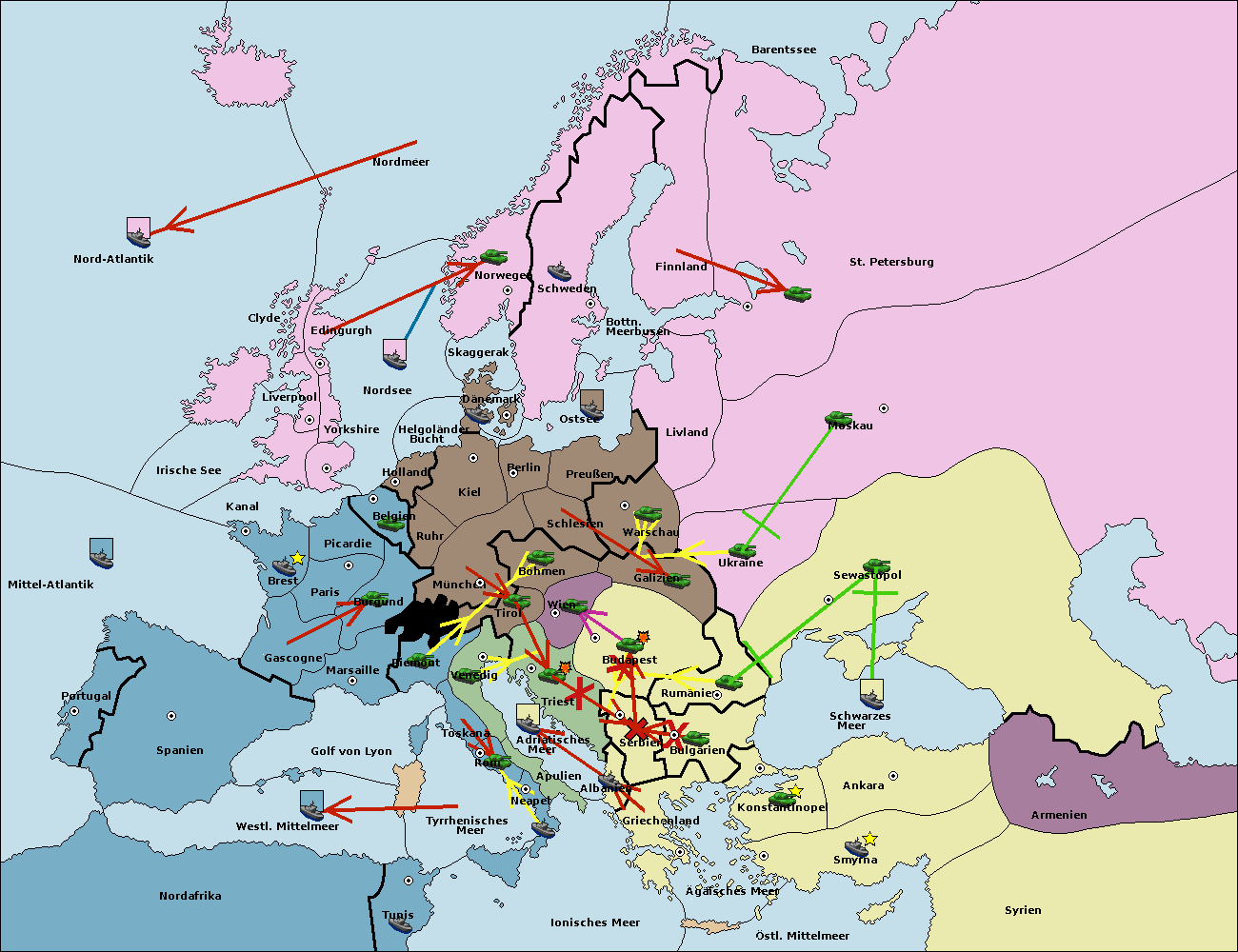 • Die Armee in Wien support move nach Budapest von Serbien.