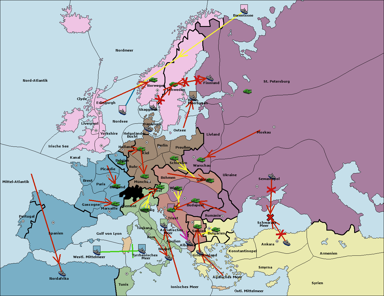 • Die Armee in Wien support move nach Triest von Budapest.