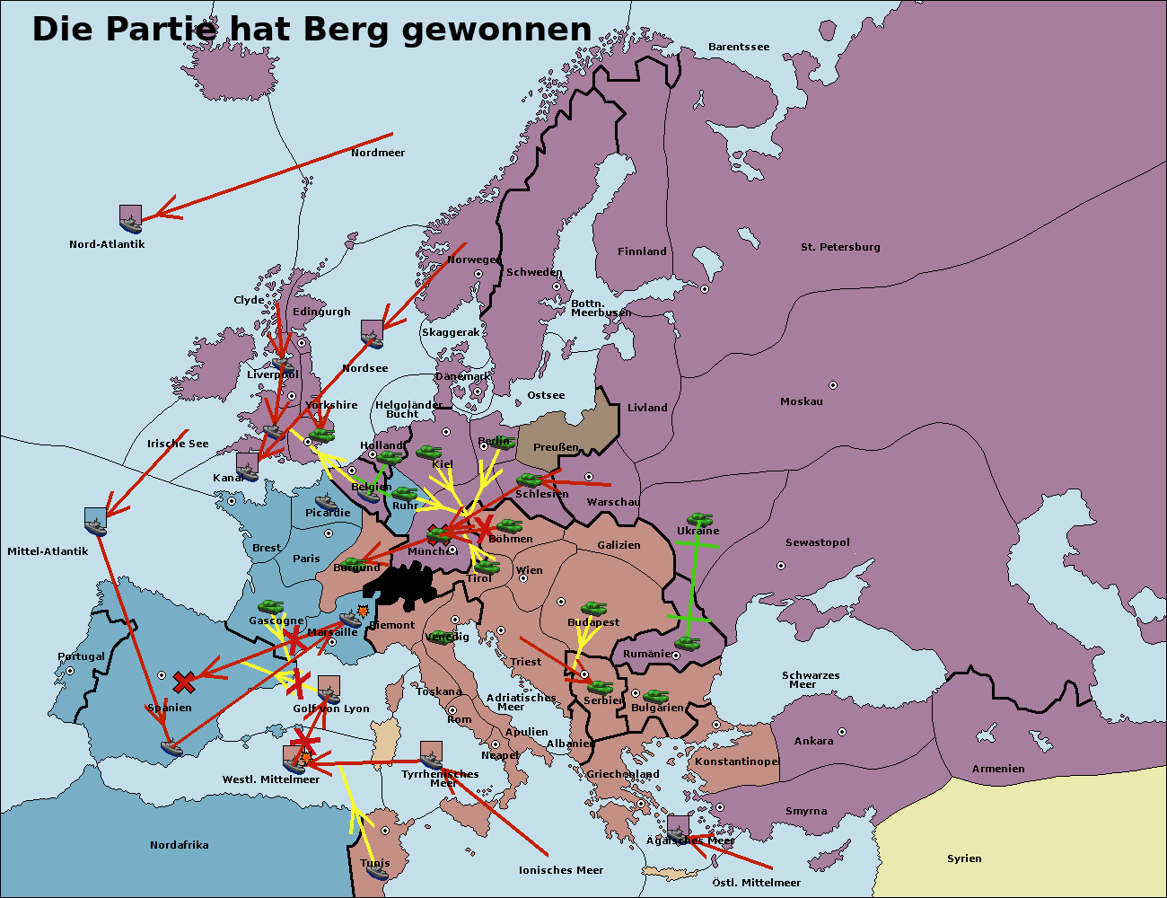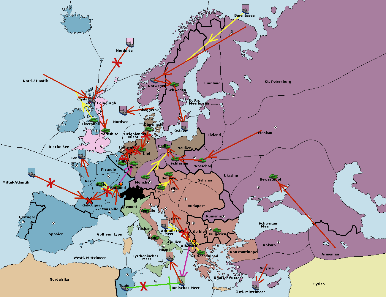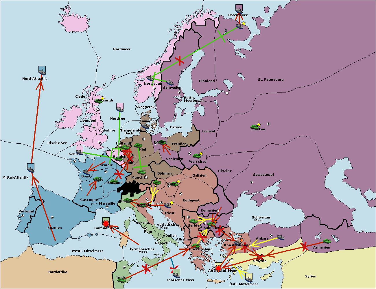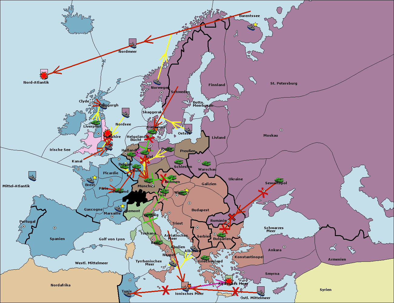 • Die Flotte in St. Petersburg (Nordküste) move nach Barentssee.
