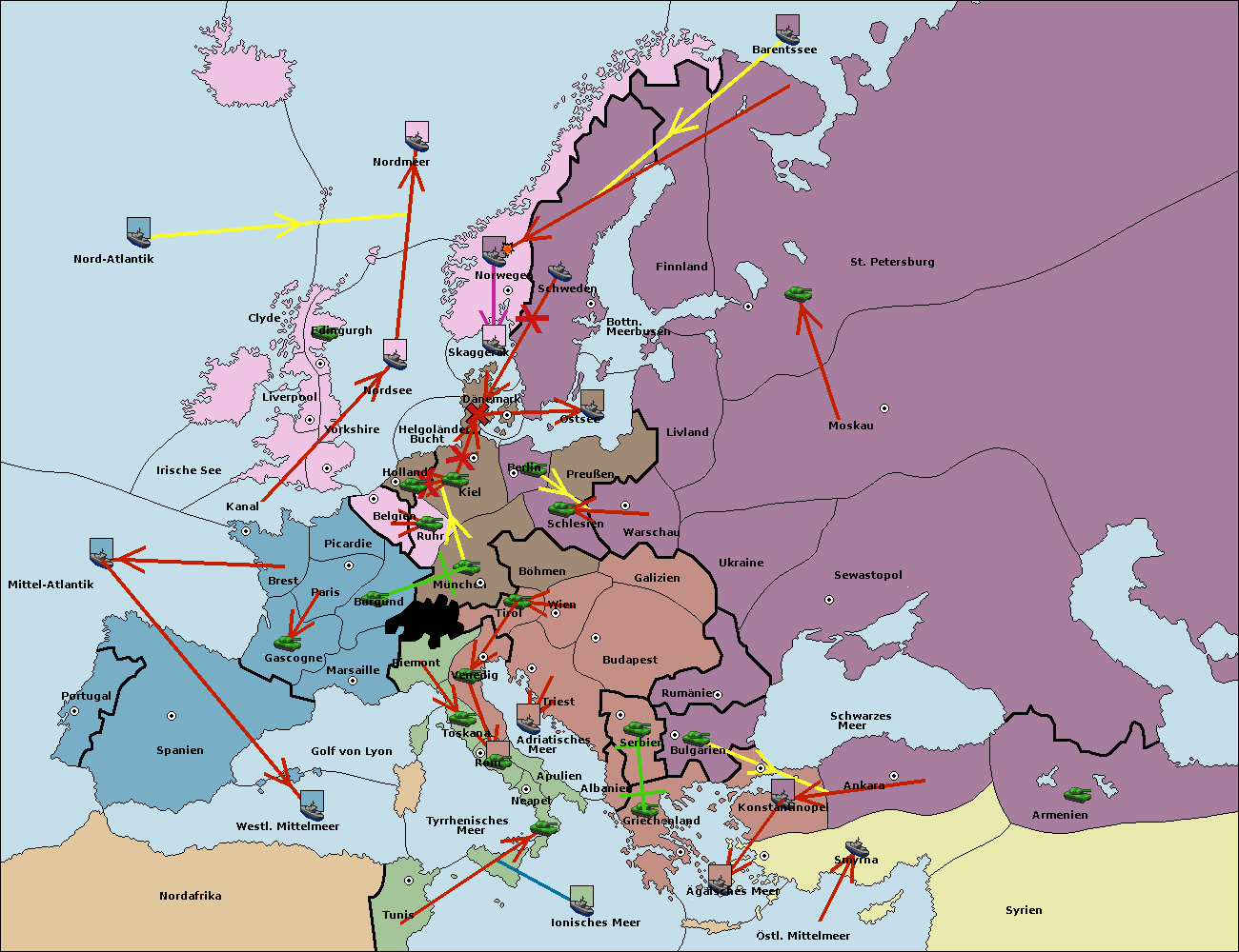 • Die Flotte in St. Petersburg (Nordküste) move nach Norwegen.