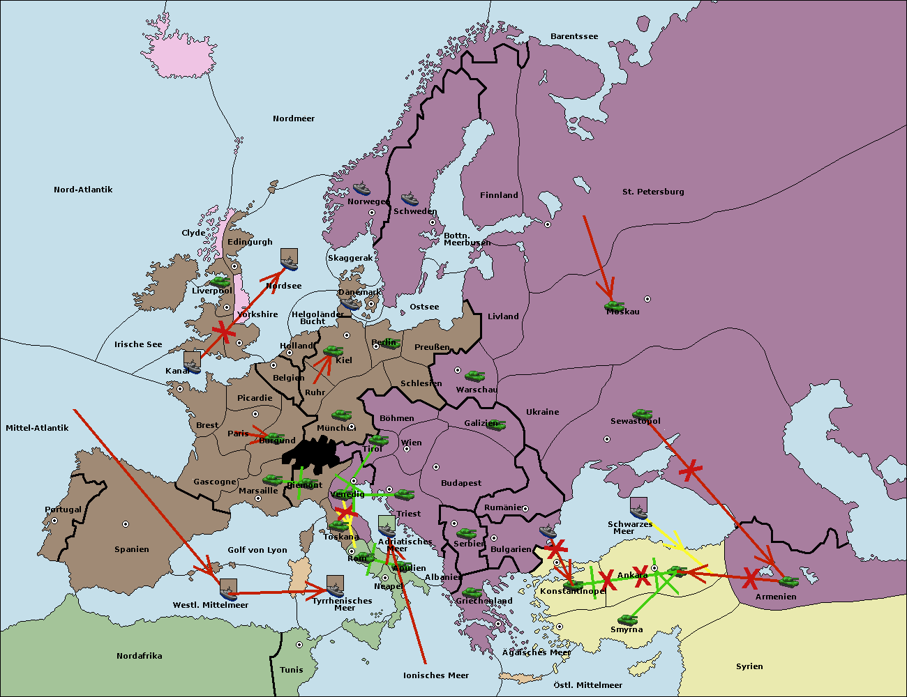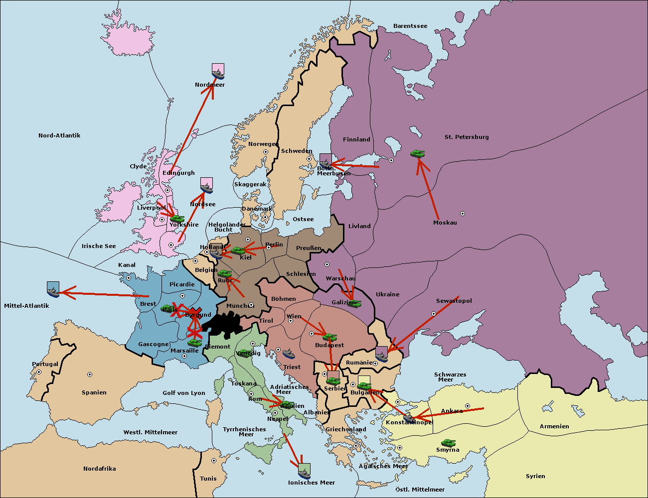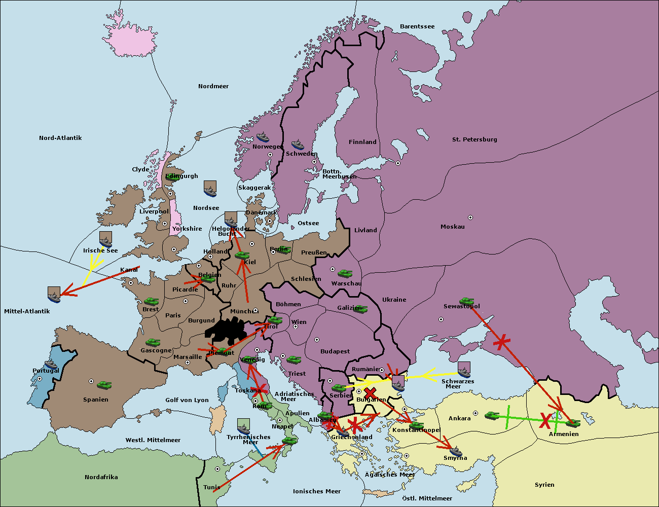 • Die Flotte in Bulgarien (Nordküste) support hold nach Konstantinopel. (gescheitert)