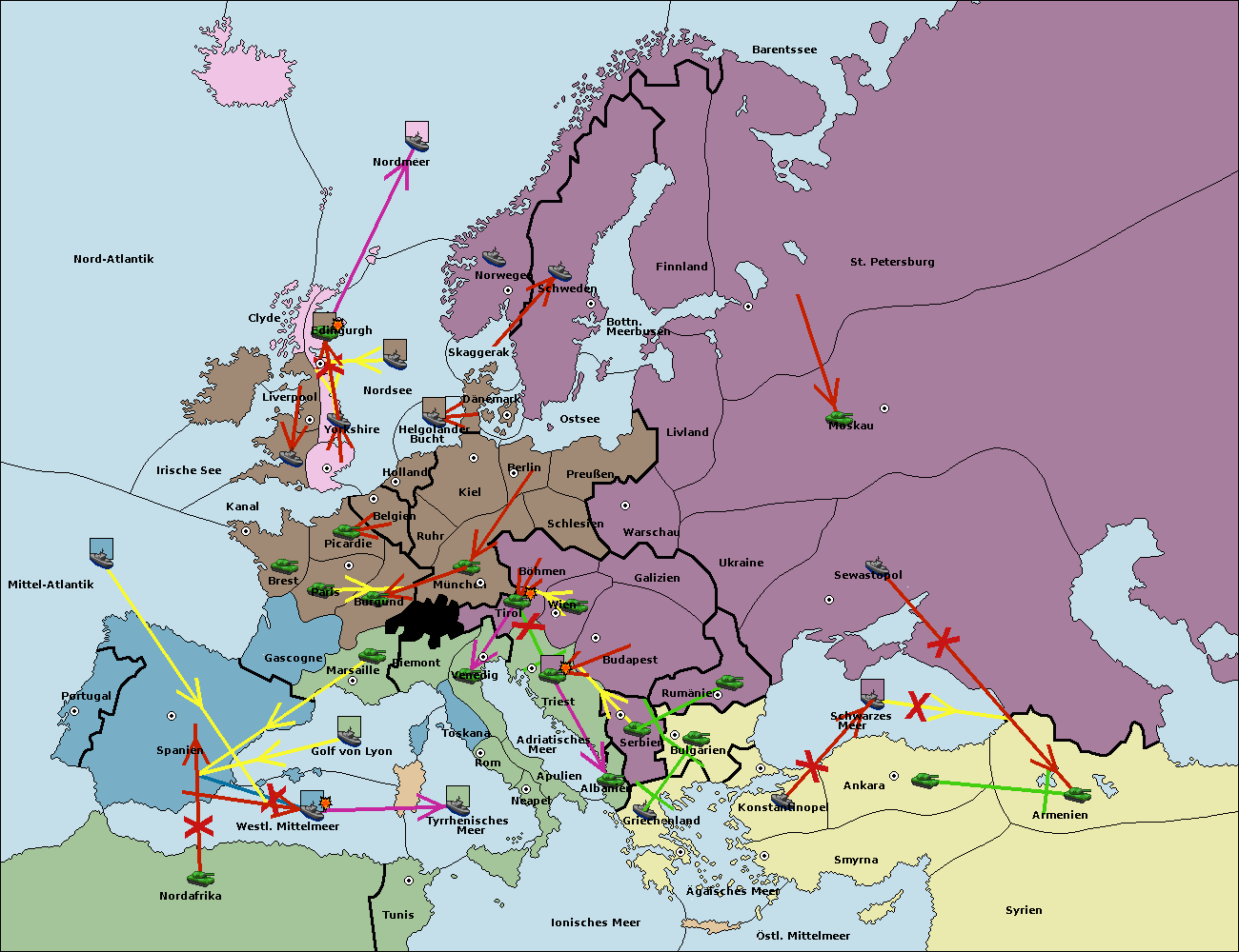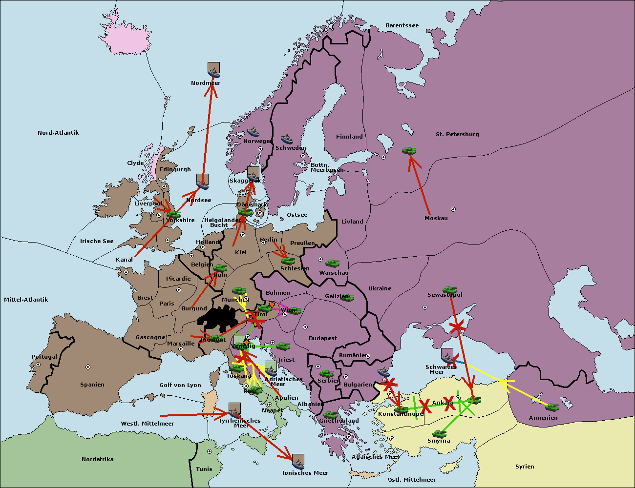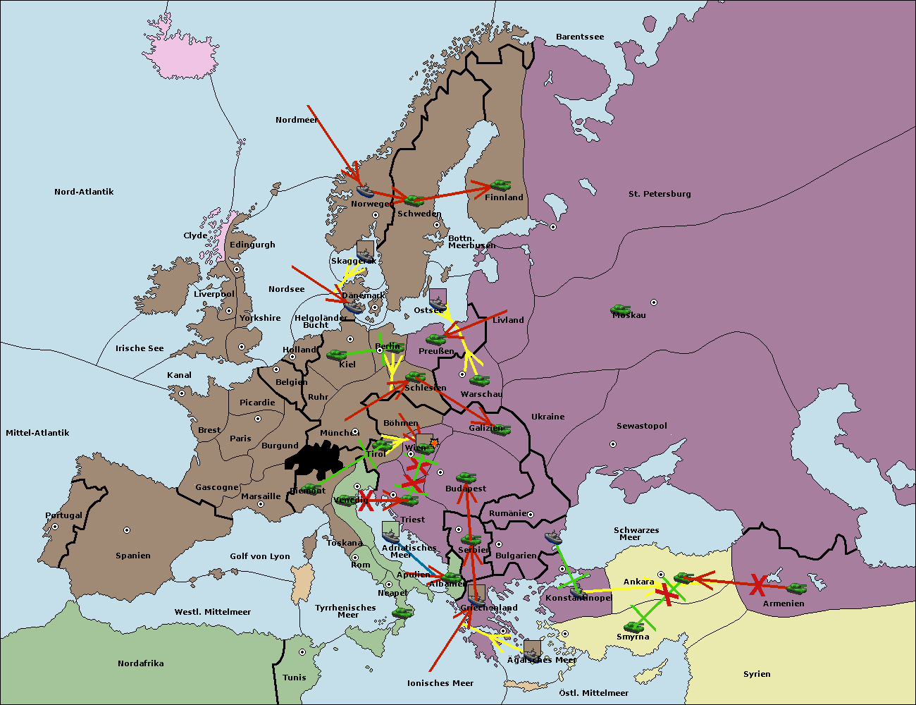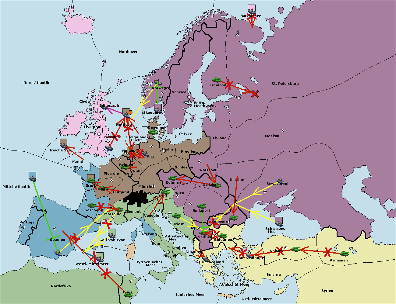 • Die Flotte in Bulgarien (Nordküste) support hold nach Konstantinopel. (gescheitert)