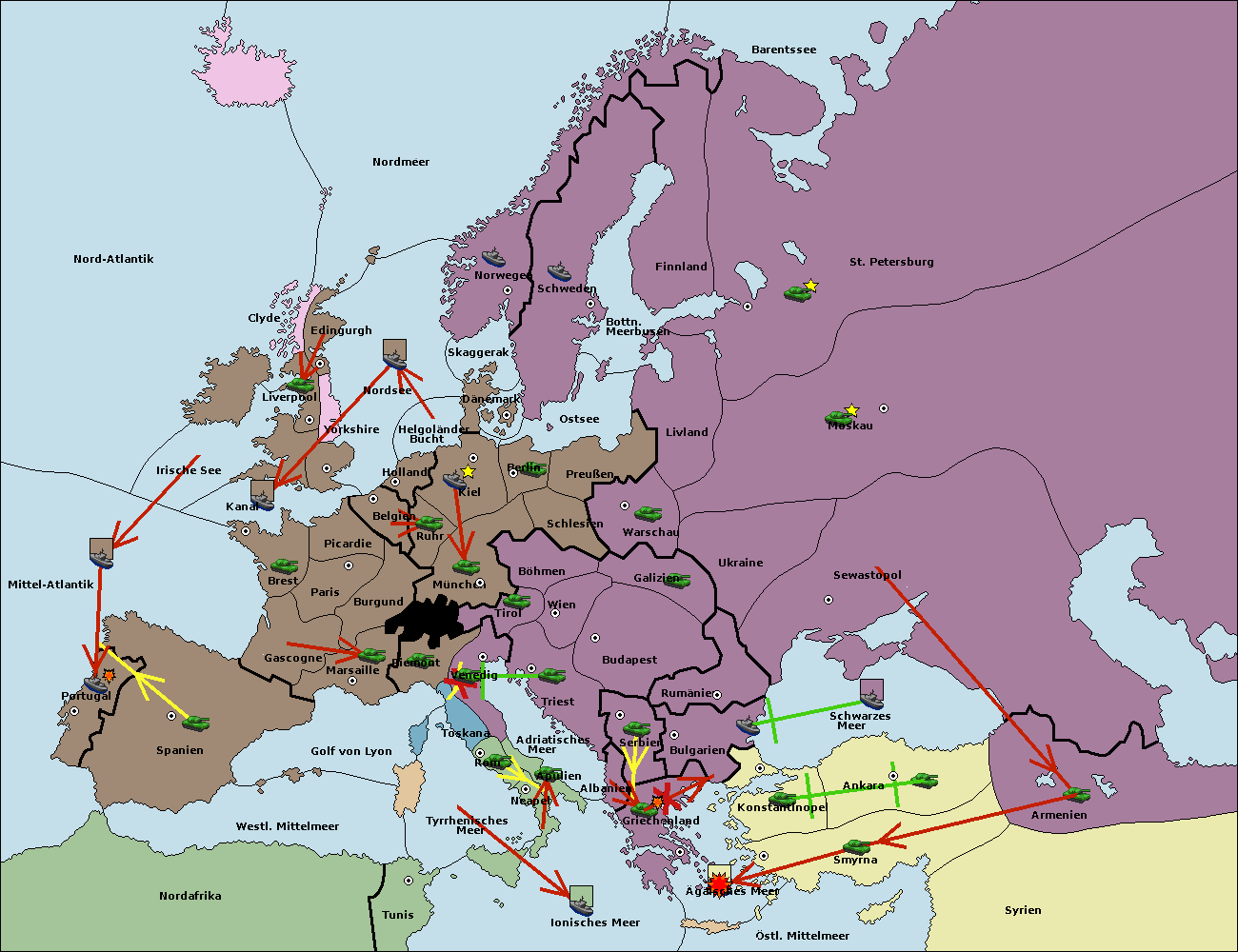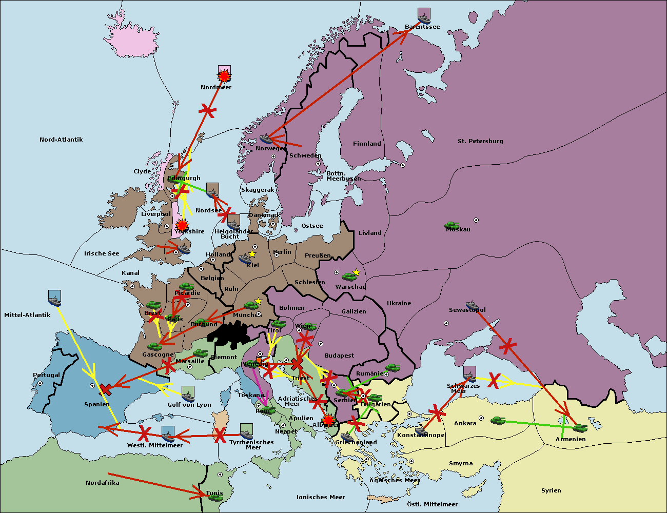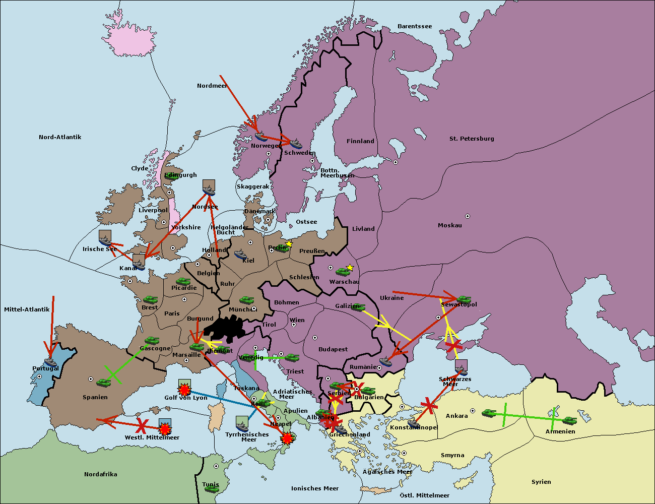 • Die Flotte in St. Petersburg (Nordküste) move nach Norwegen.