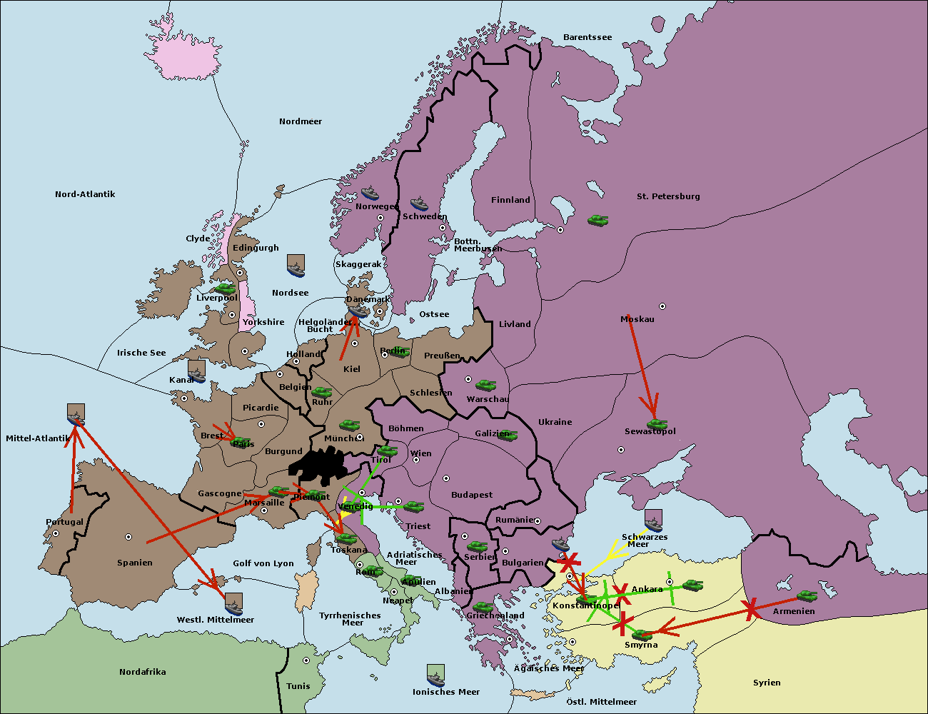 • Die Flotte in Konstantinopel support hold nach Bulgarien.