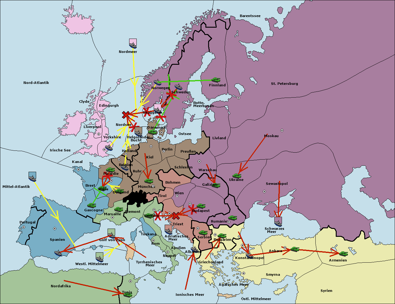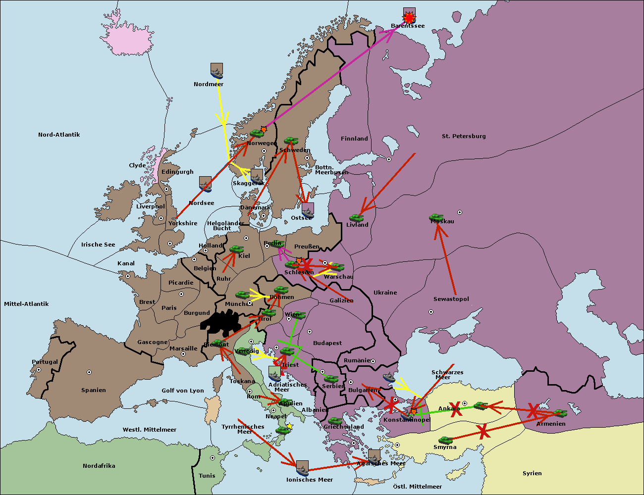 • Die Armee in Warschau support move nach Preußen von Livland.