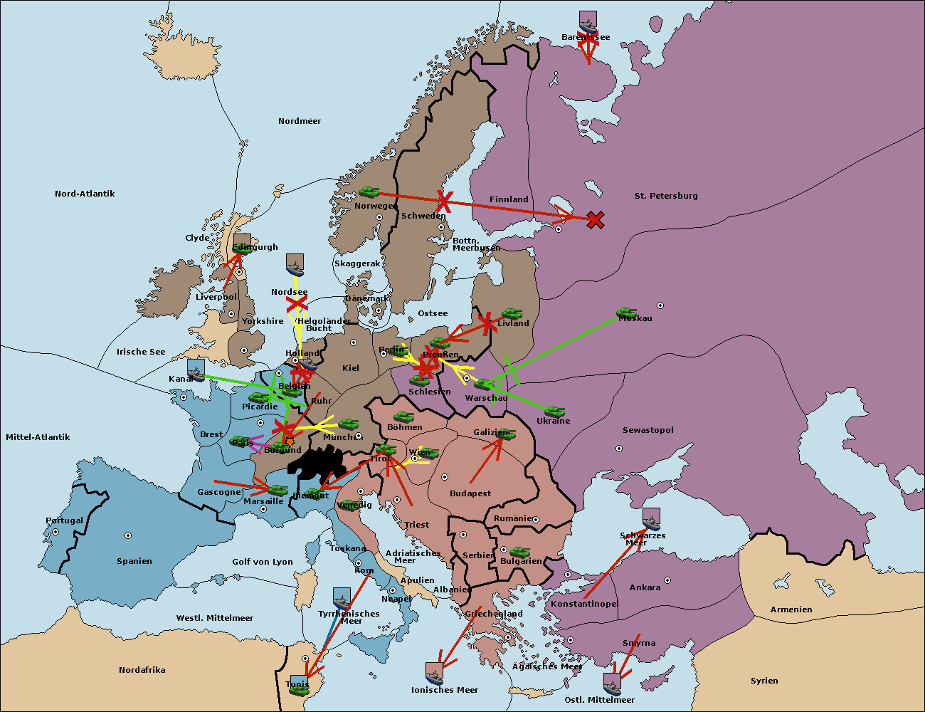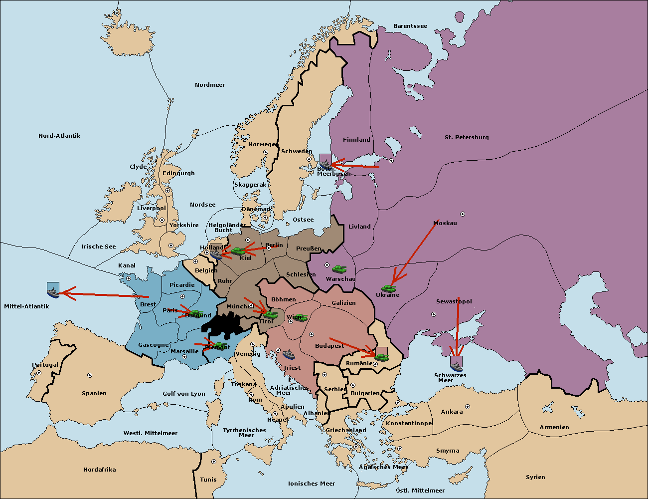 • Die Flotte in St. Petersburg (Nordküste) move nach Barentssee.