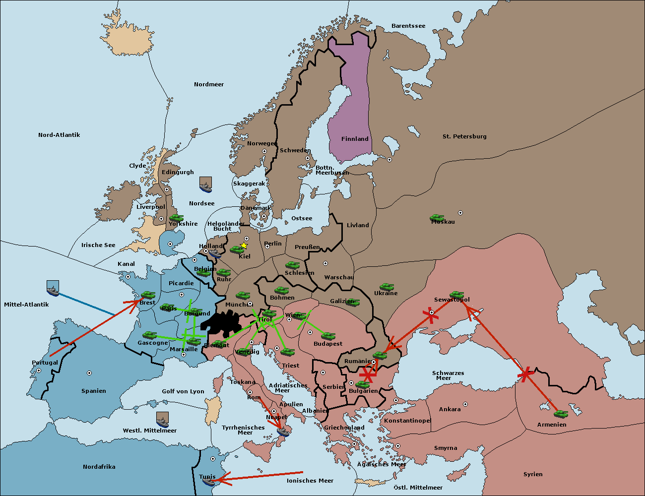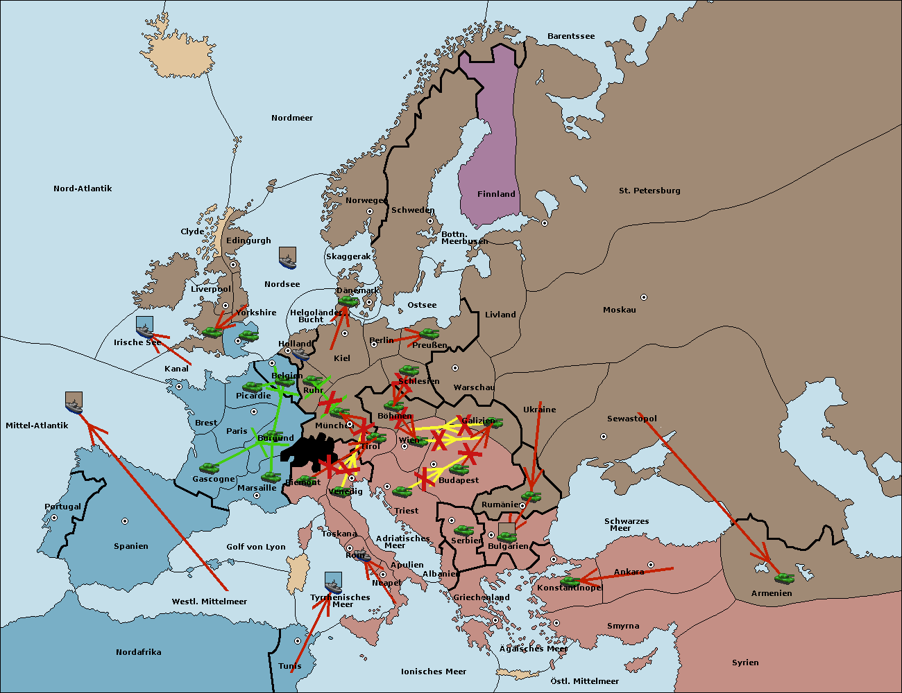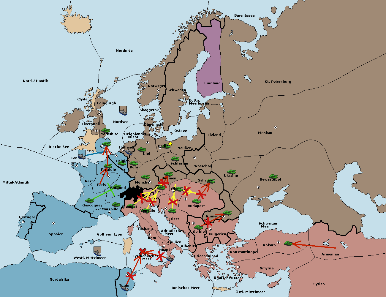 • Die Armee in Triest support move nach Wien von Böhmen. (gescheitert)