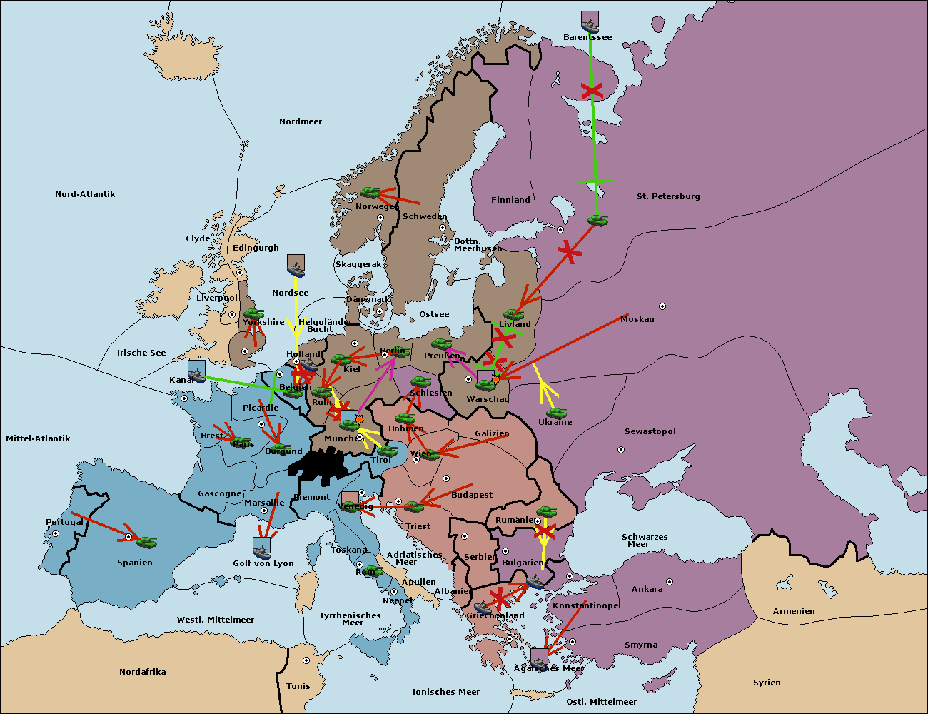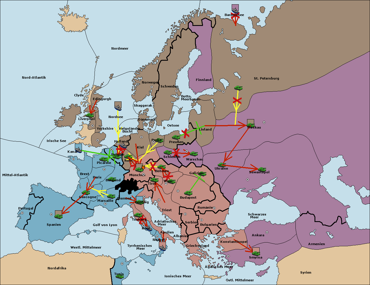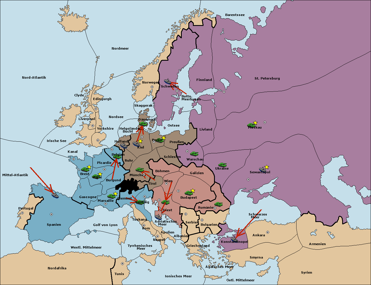 • Die Armee in Triest support move nach Wien von Böhmen. (gescheitert)