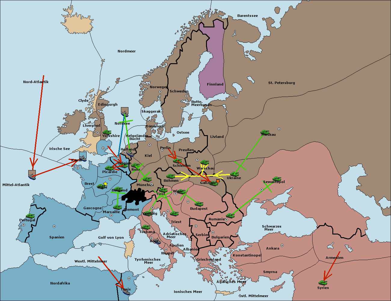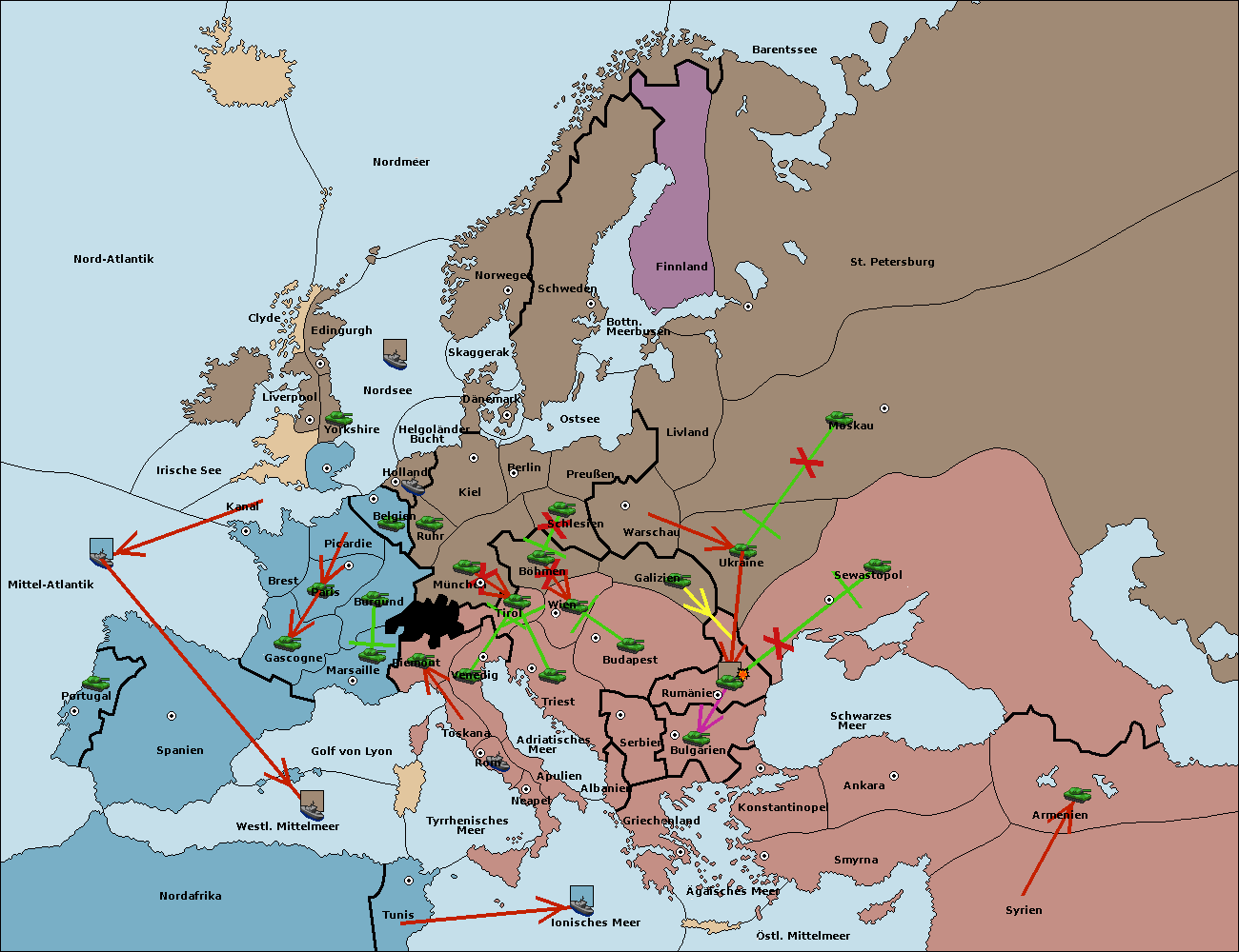 • Die Flotte in Griechenland move nach Bulgarien (Südküste). (gescheitert)