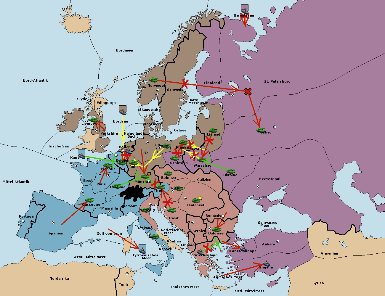 • Die Armee in Triest support move nach Budapest von Galizien. (gescheitert)