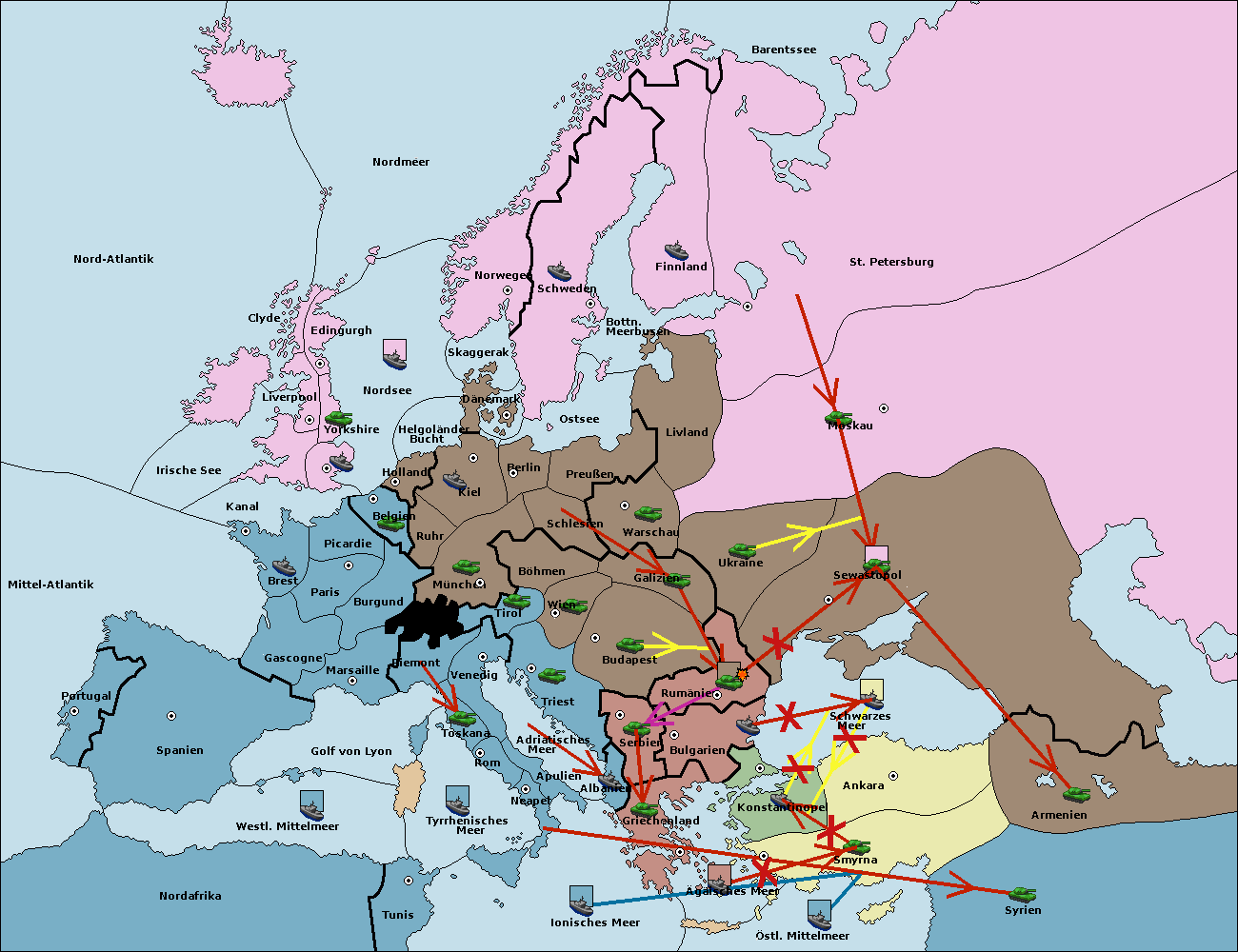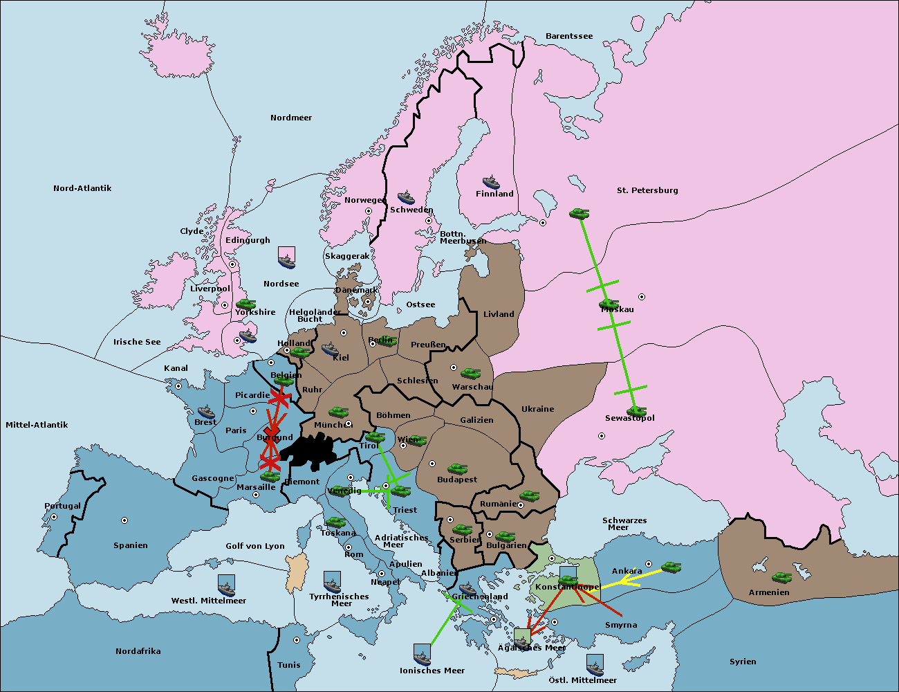 • Die Flotte in Griechenland move nach Bulgarien (Südküste). (gescheitert)