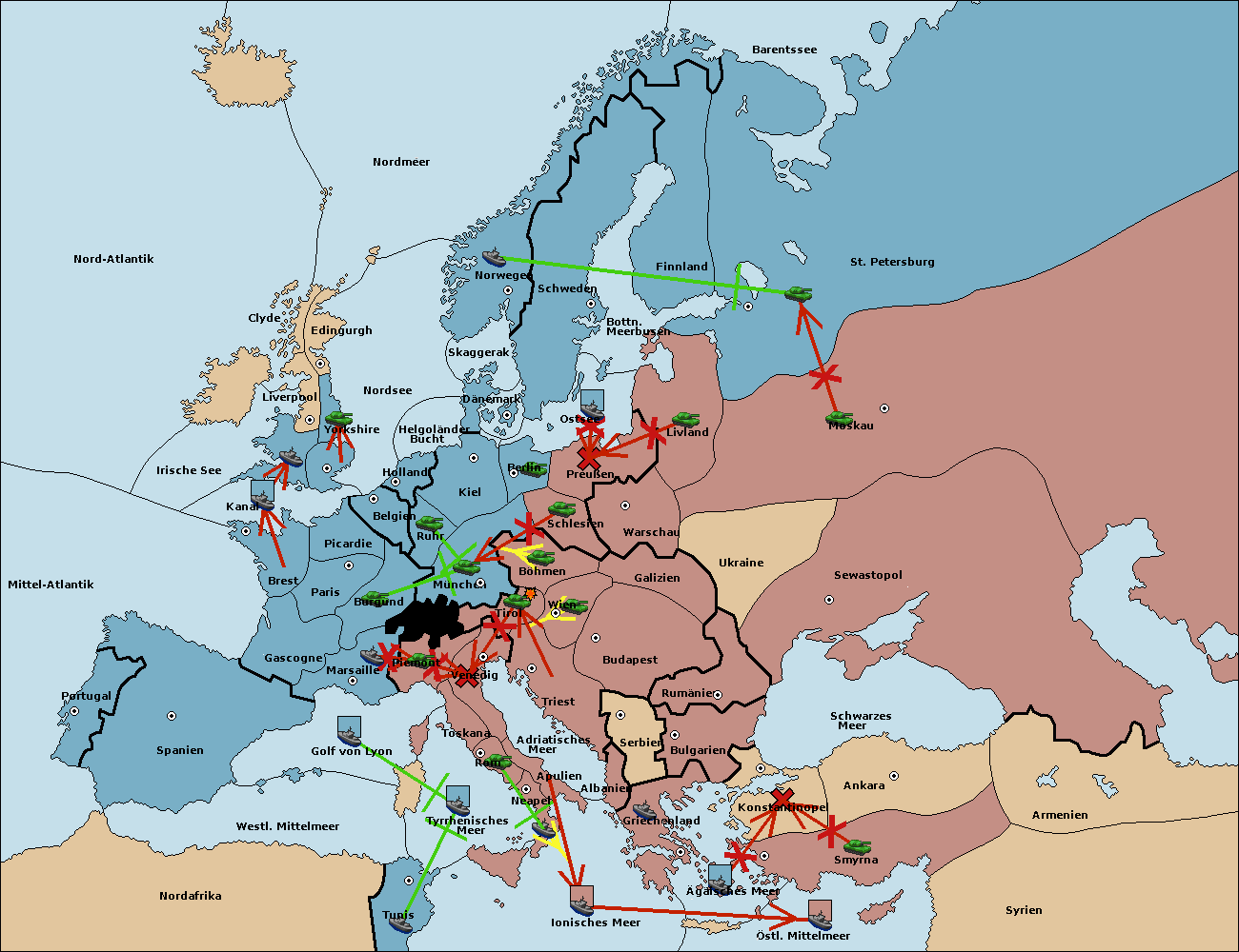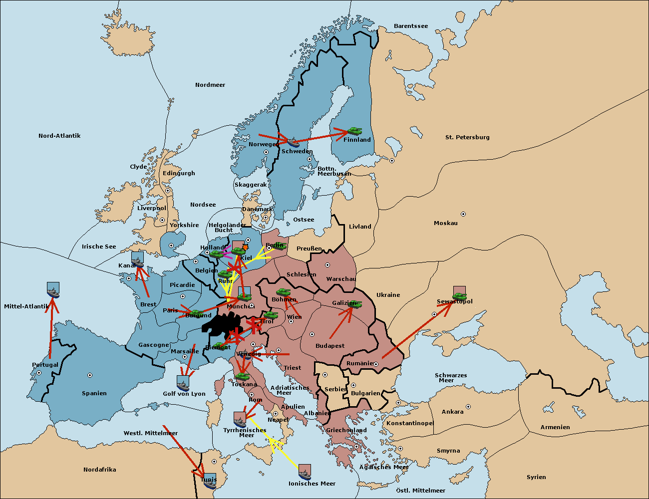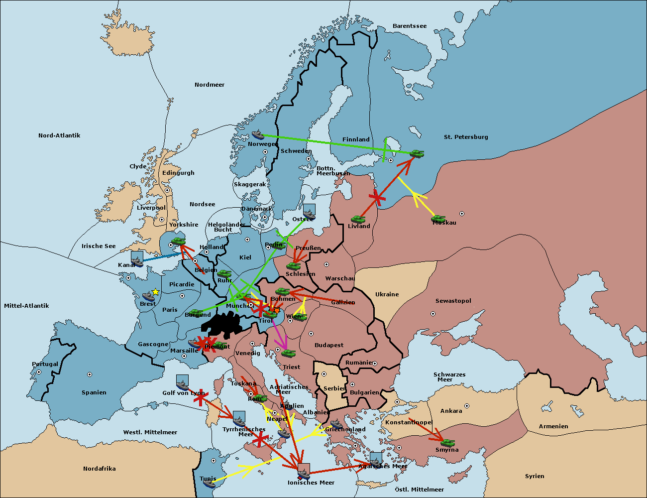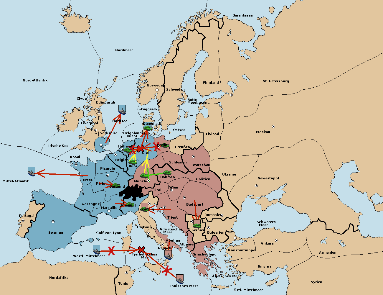 • Die Armee in Kiel support move nach München von Burgund. (gescheitert) (verdrängt)