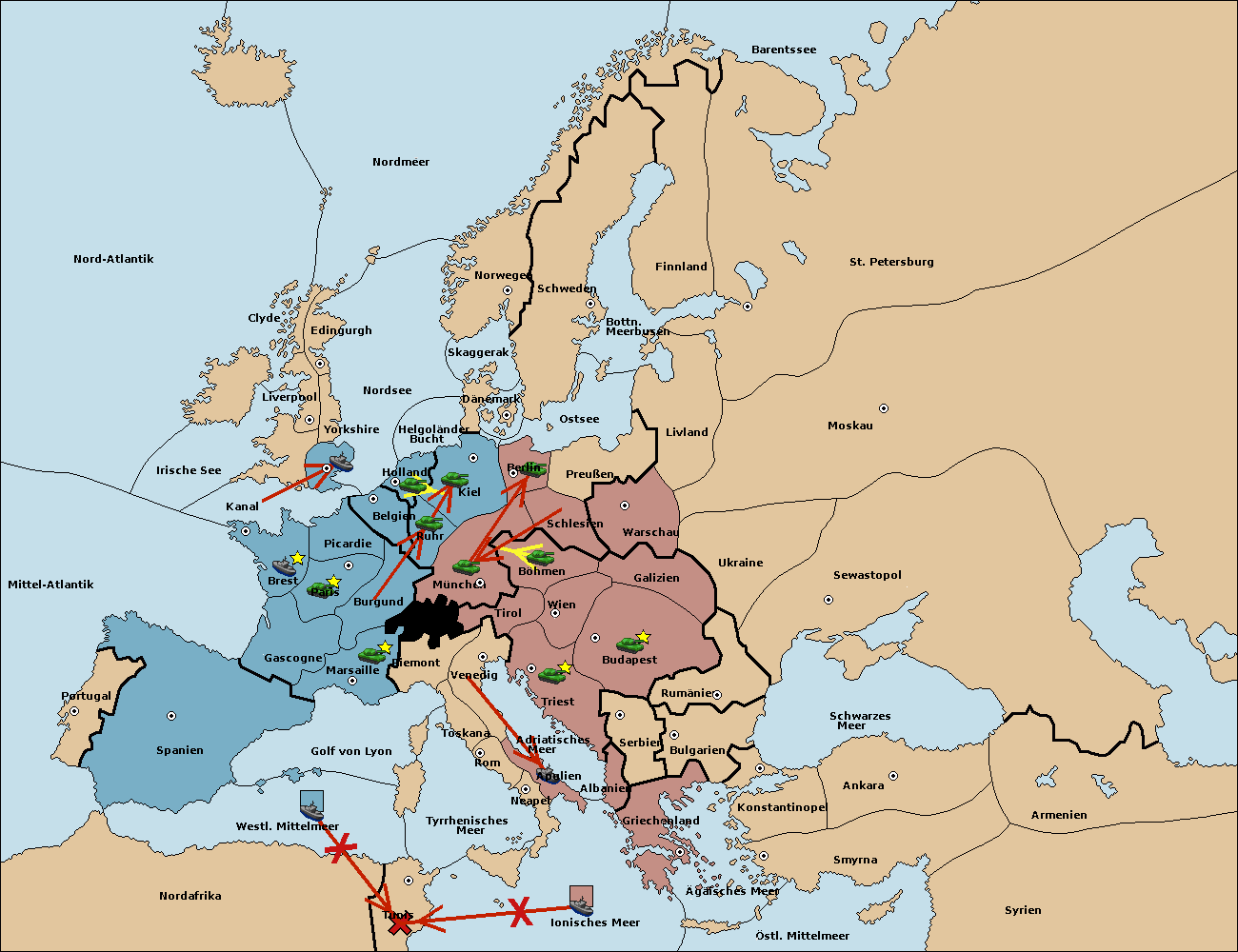 • Die Flotte in Spanien (Südküste) move nach westl. Mittelmeer.