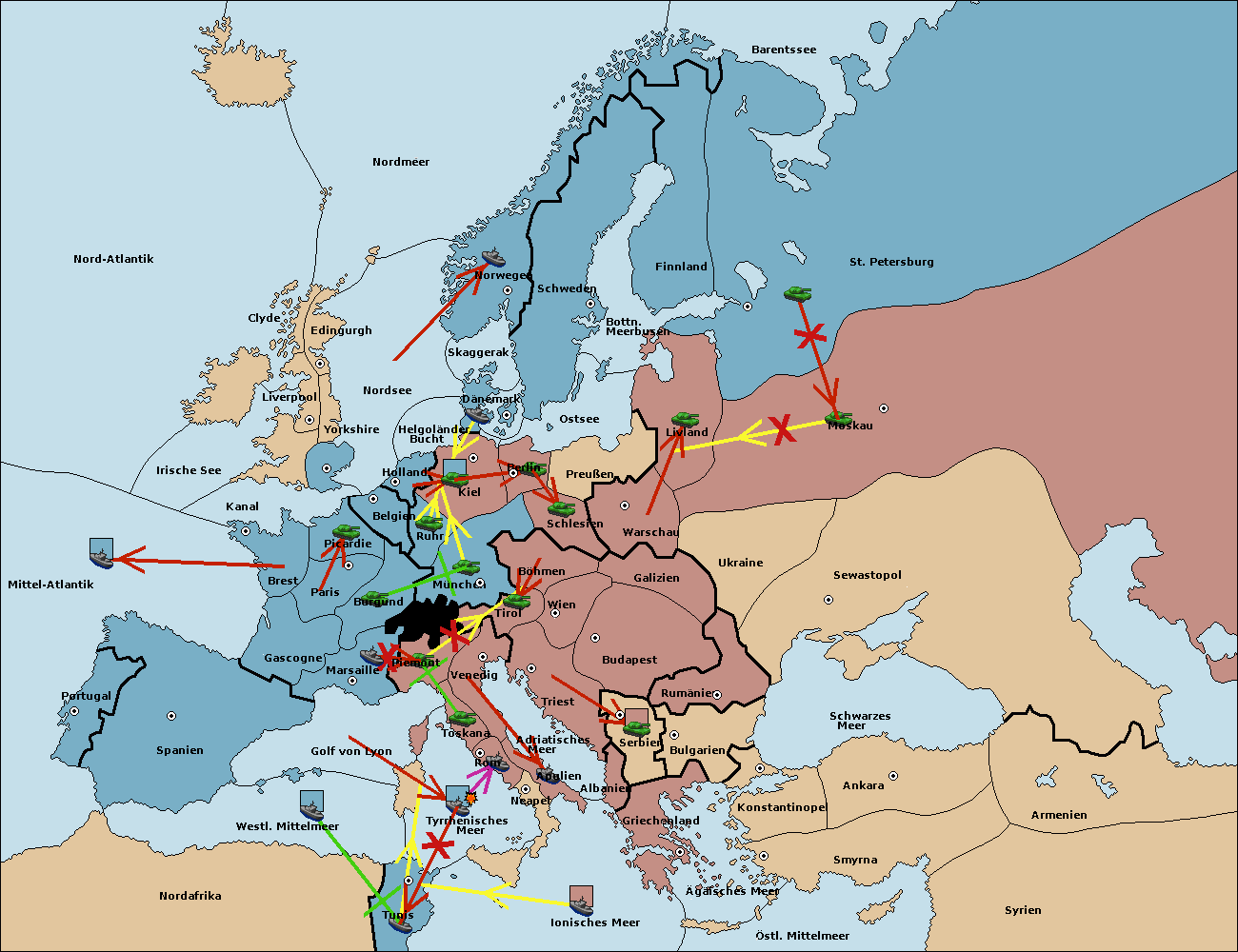 • Die Flotte in Golf von Lyon move nach Toskana. (gescheitert)