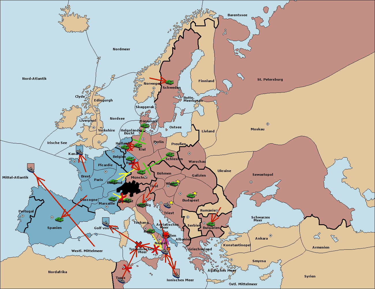 • Die Flotte in Spanien (Südküste) move nach westl. Mittelmeer.