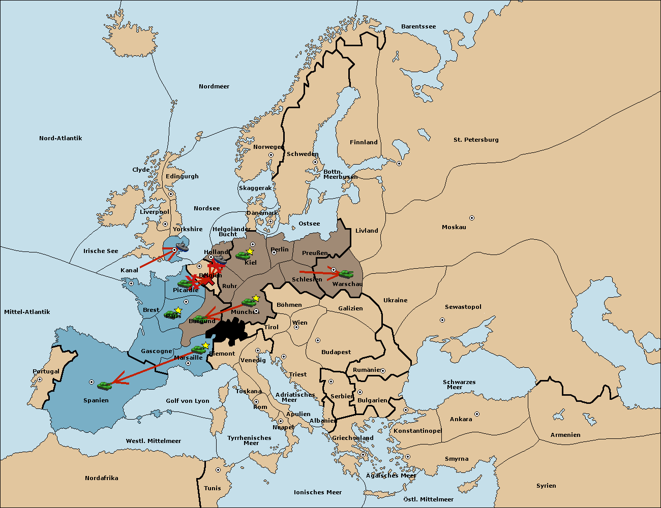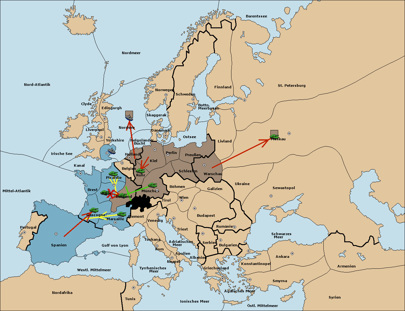 • Die Armee in Belgien support move nach Burgund von München. (gescheitert)