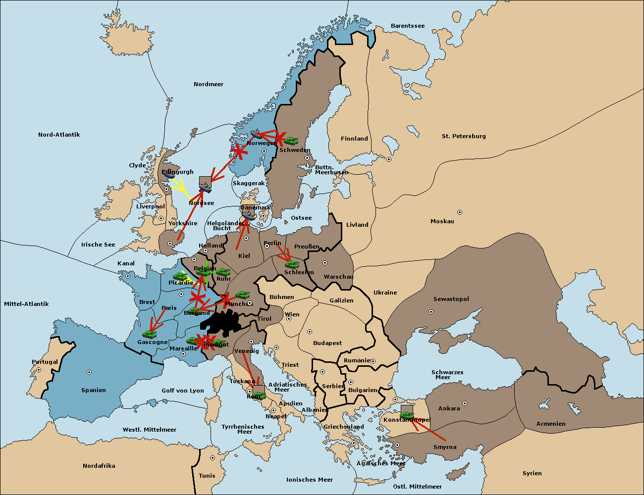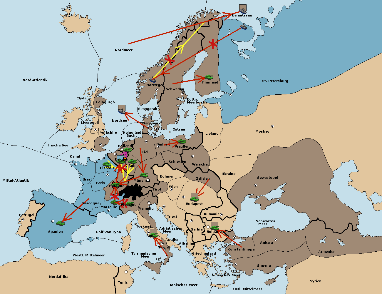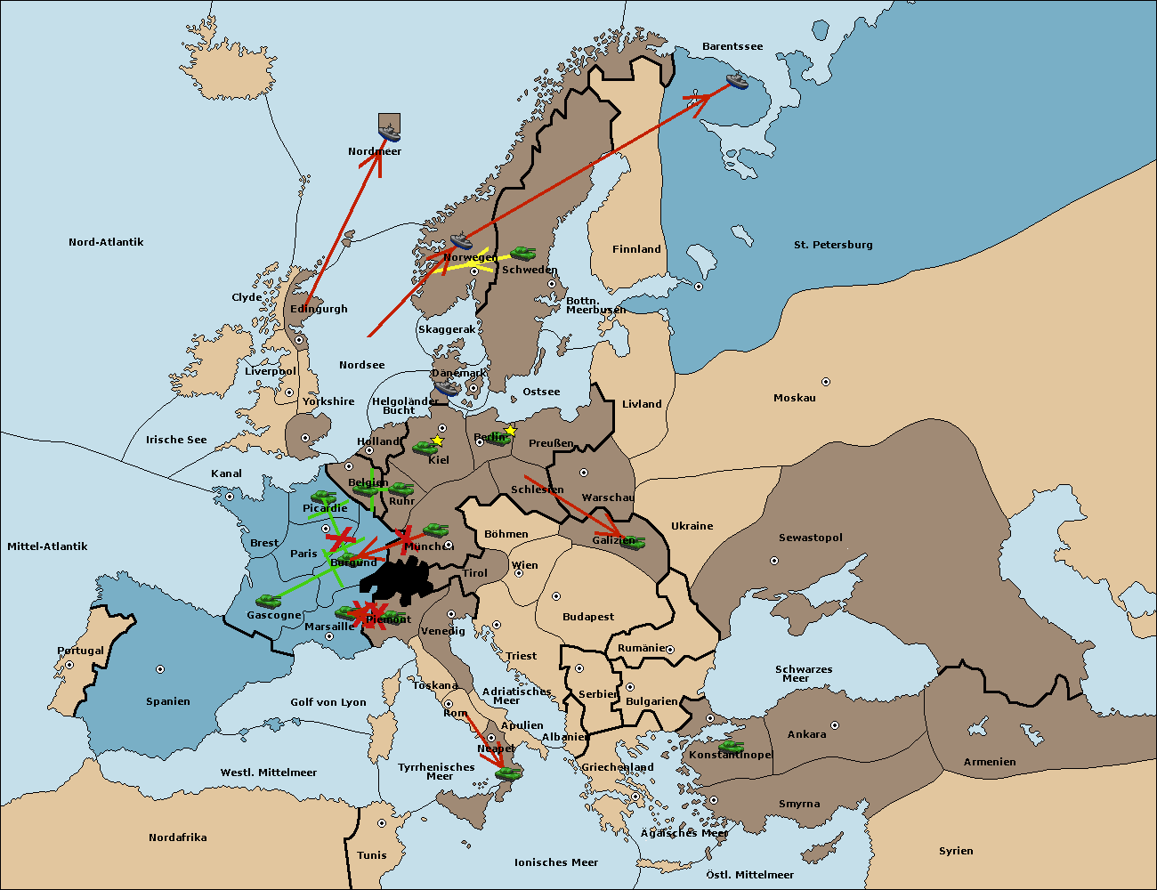 • Die Flotte in St. Petersburg (Nordküste) move nach Norwegen. (gescheitert)