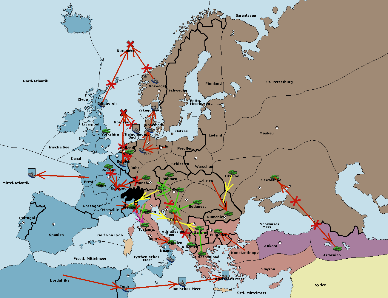 • Die Armee in Wien support move nach Triest von Tirol.