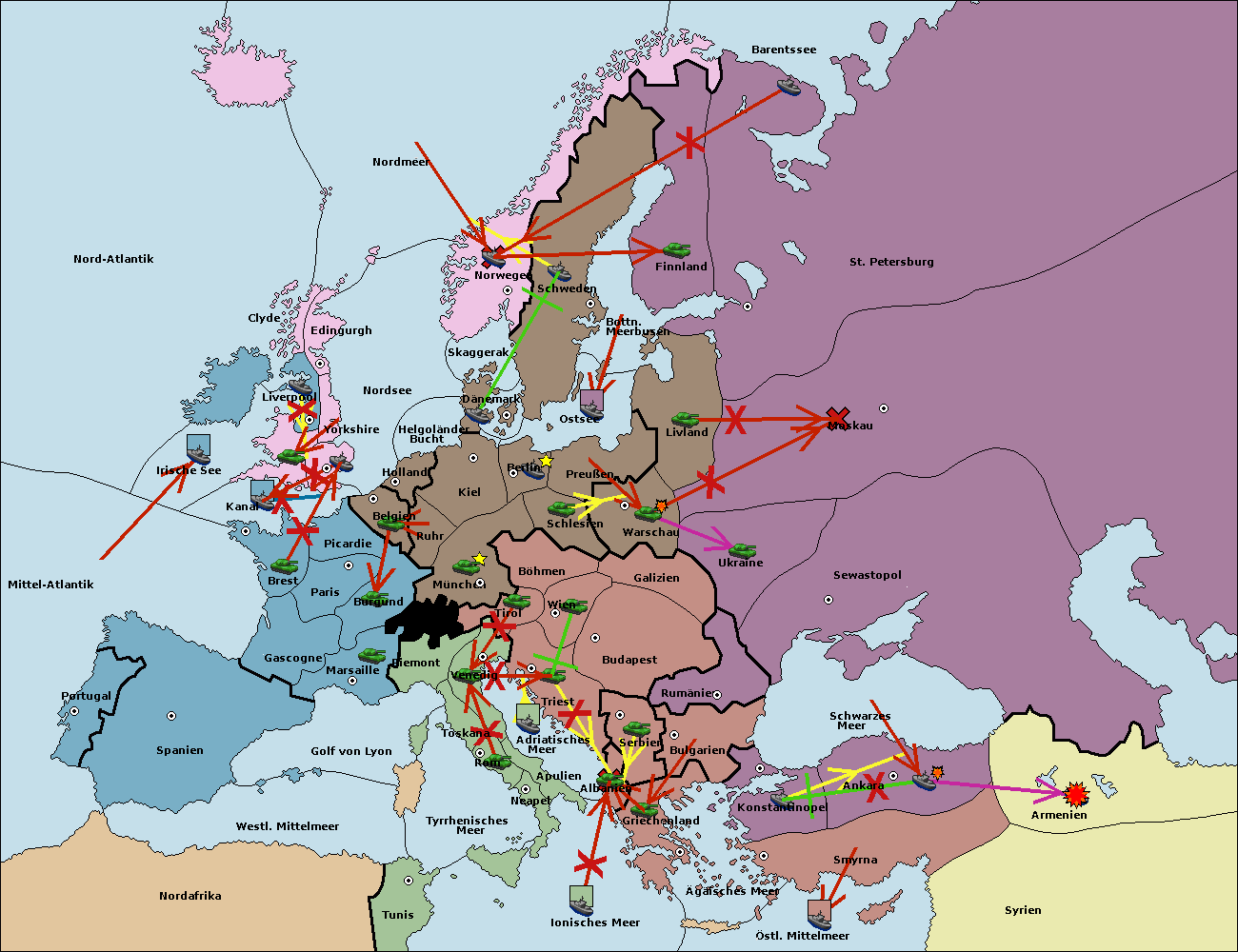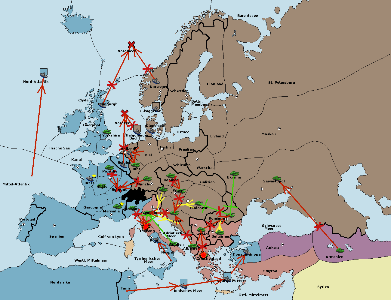 • Die Armee in Bulgarien wird zerstörtFlotte in Bulgarien gebaut.