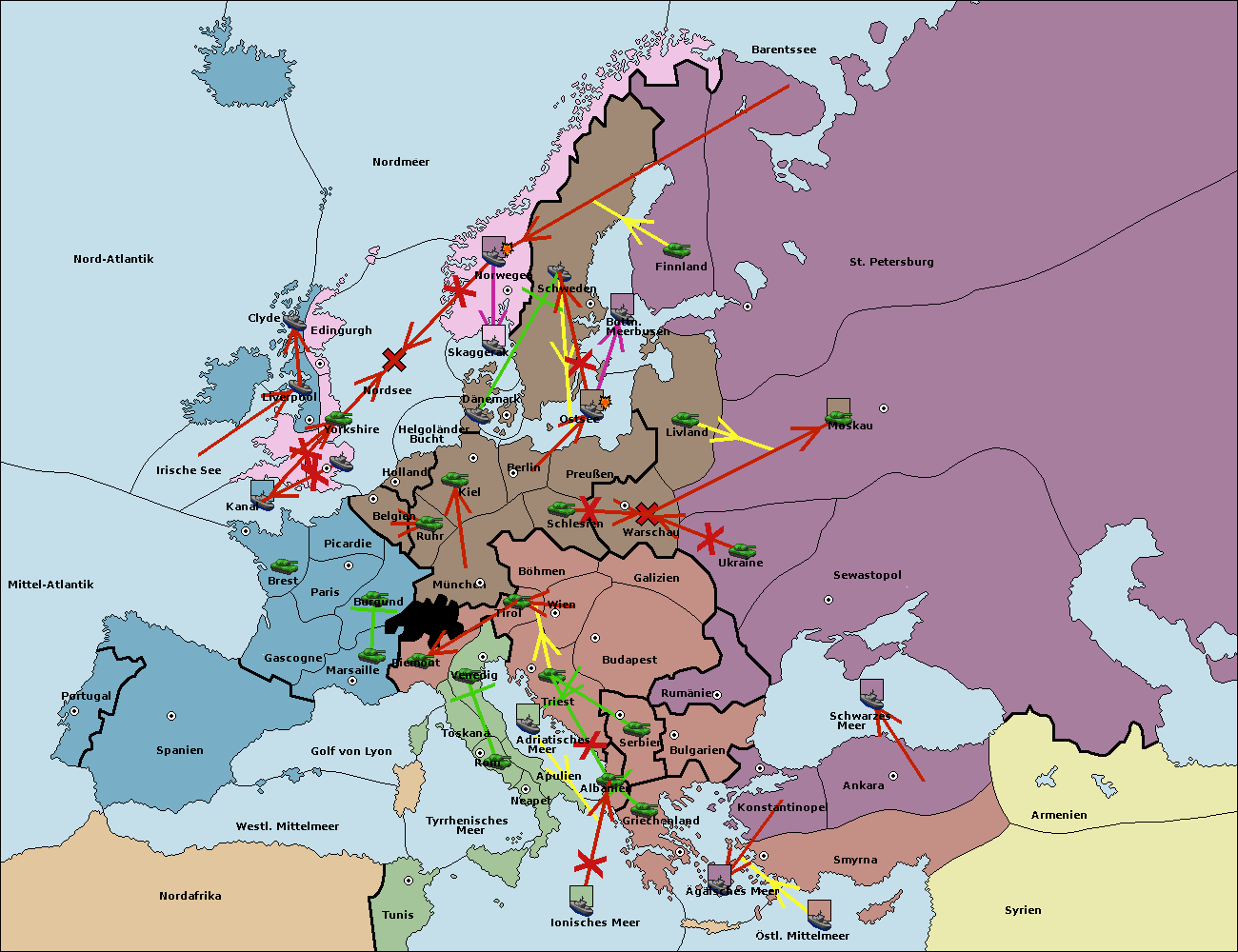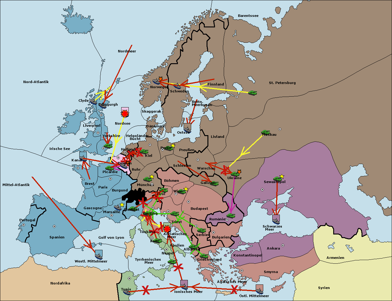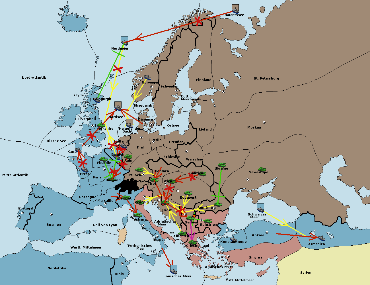 • Die Flotte in Belgien move nach Nordsee. (gescheitert)