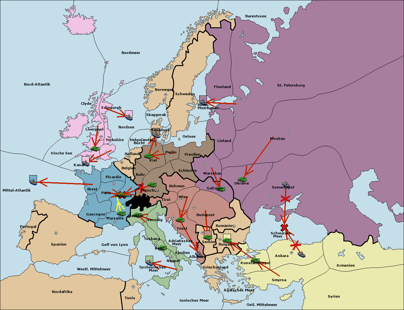 • Die Armee in Belgien support move nach Burgund von München. (gescheitert)