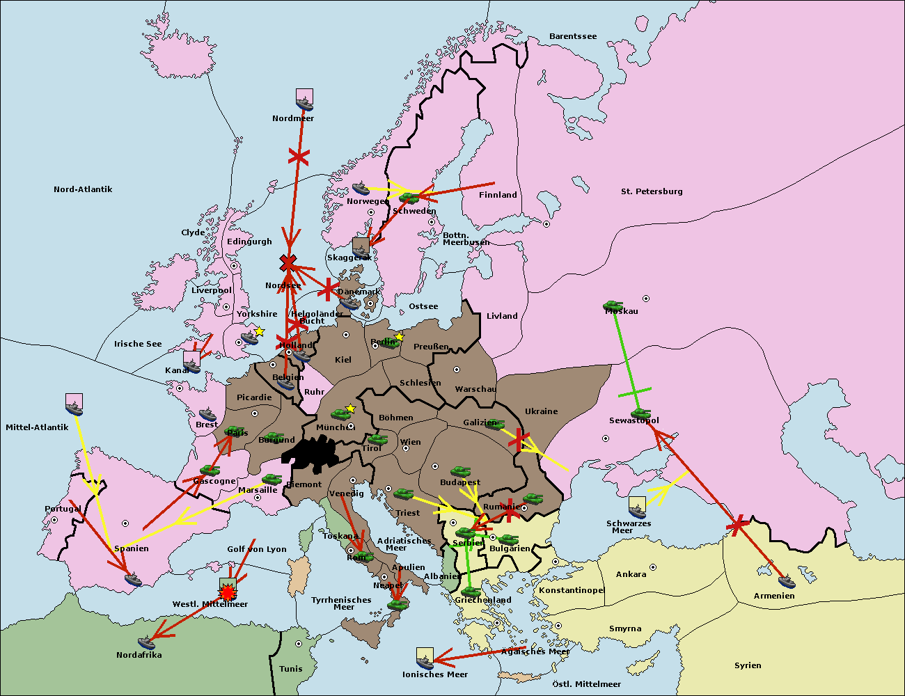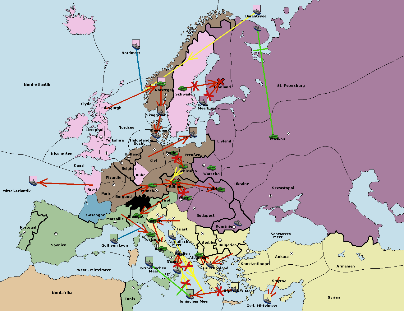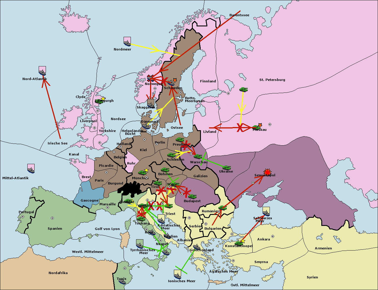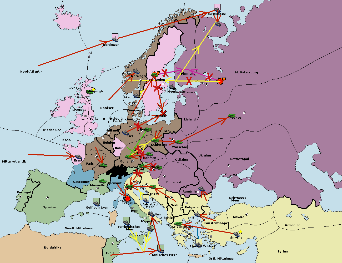 • Die Flotte in St. Petersburg (Nordküste) move nach Norwegen.