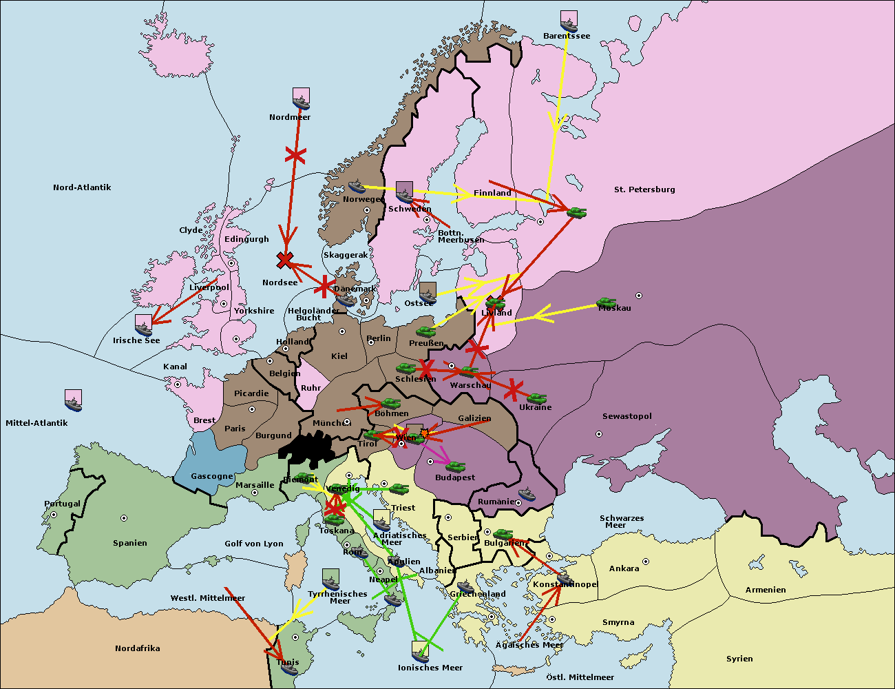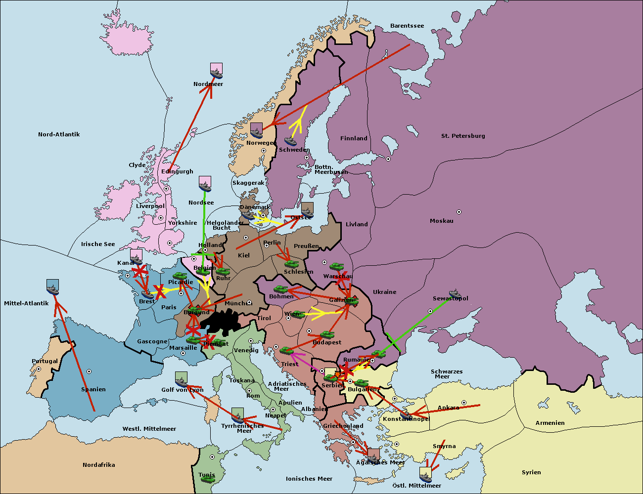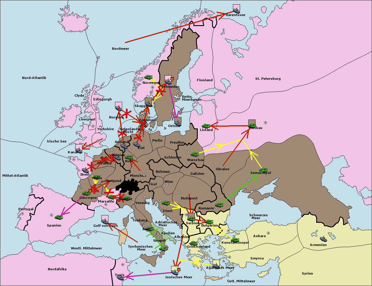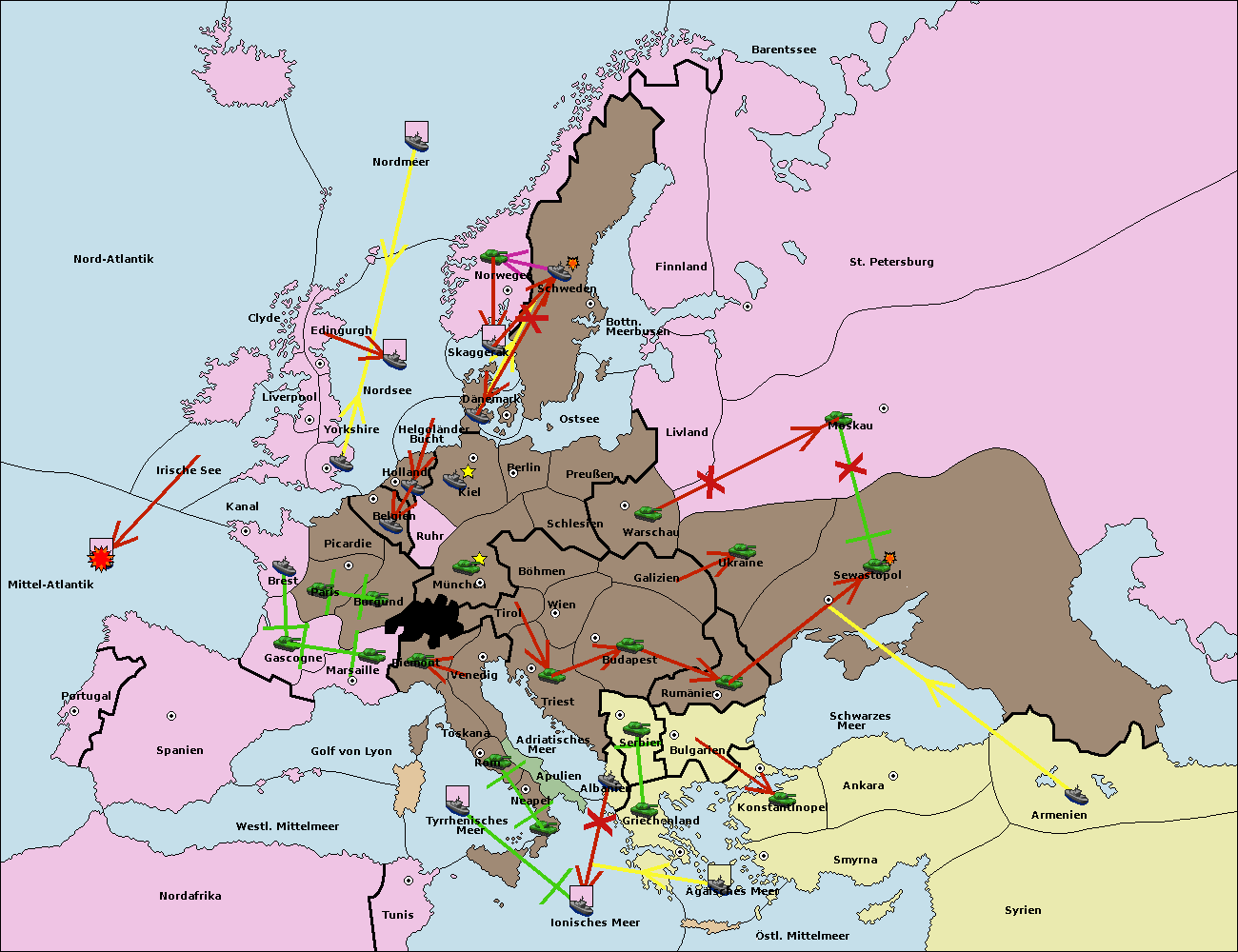 • Die Flotte in St. Petersburg (Nordküste) move nach Norwegen.
