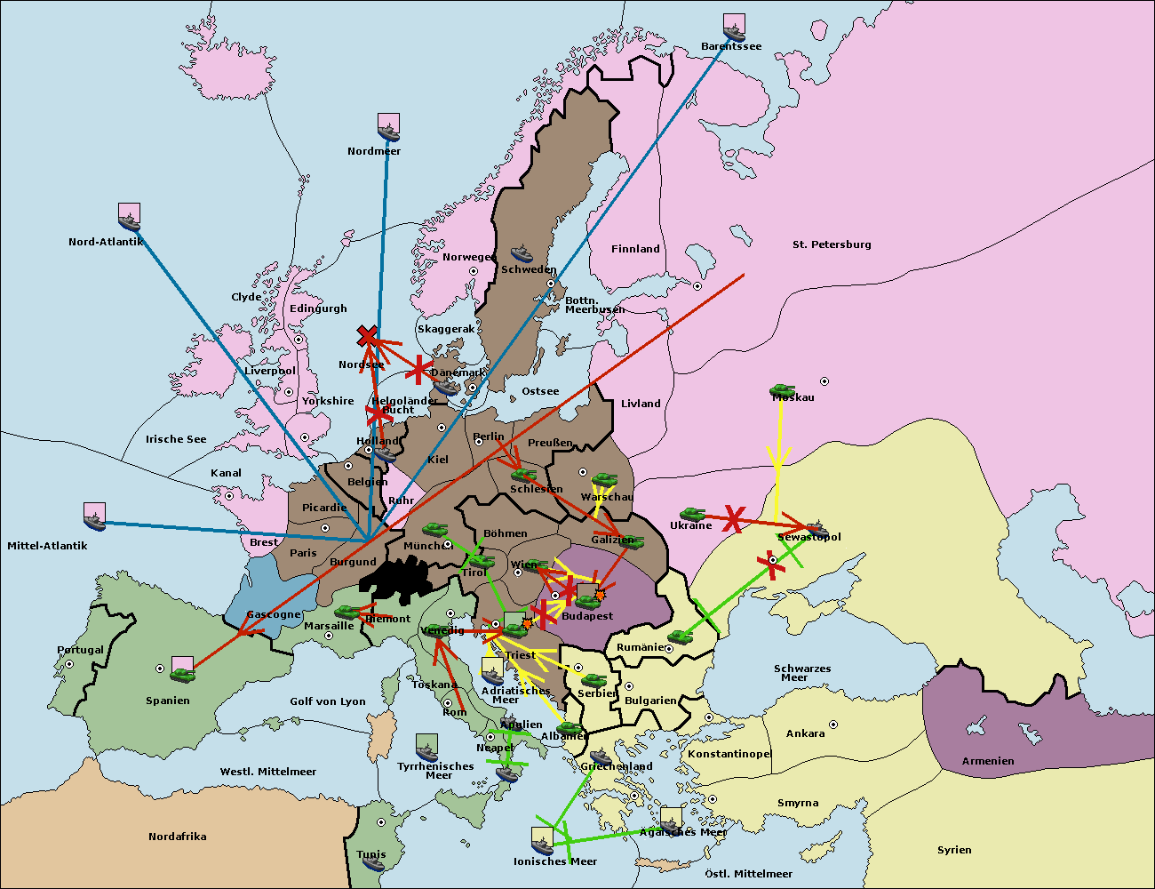 • Die Armee in Wien support move nach Galizien von Budapest.