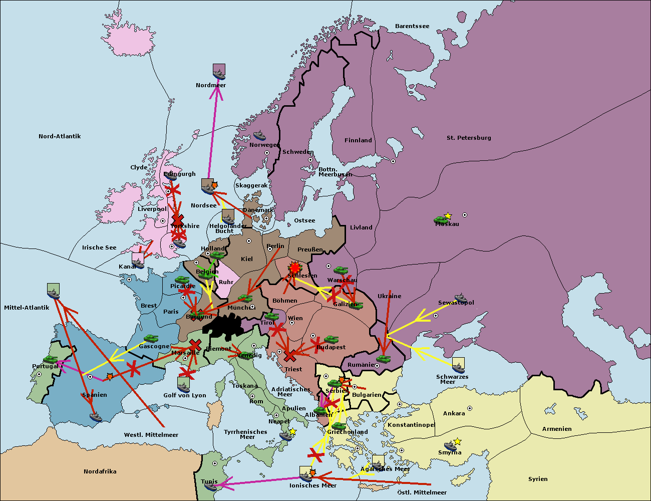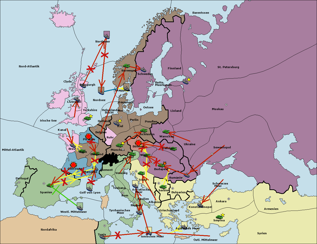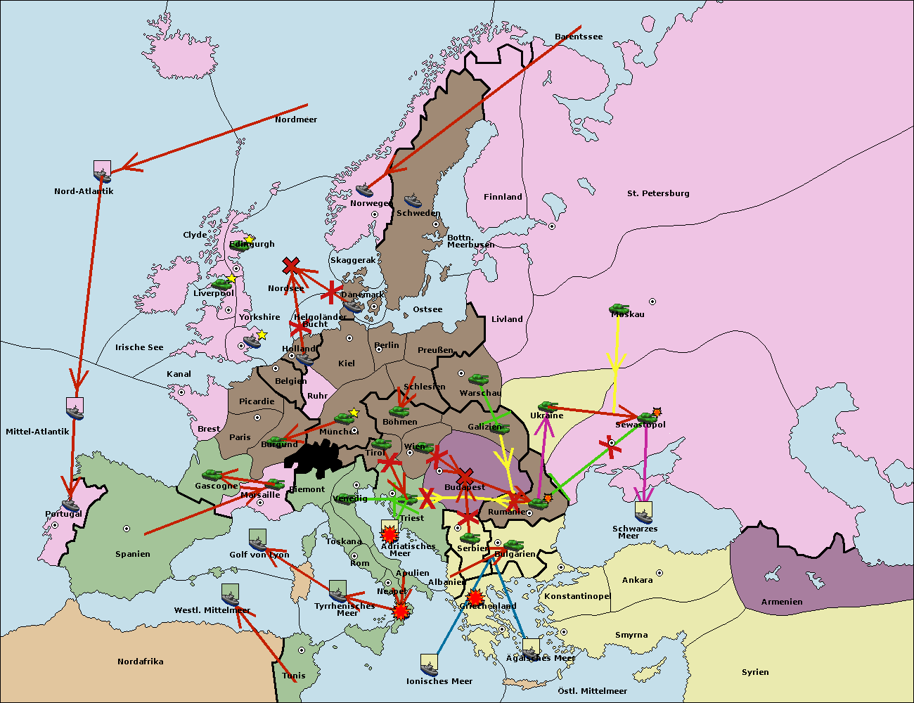 • Die Armee in Konstantinopel support hold nach Bulgarien.