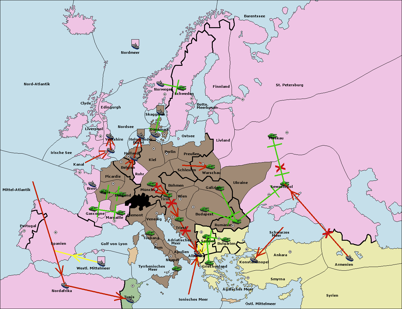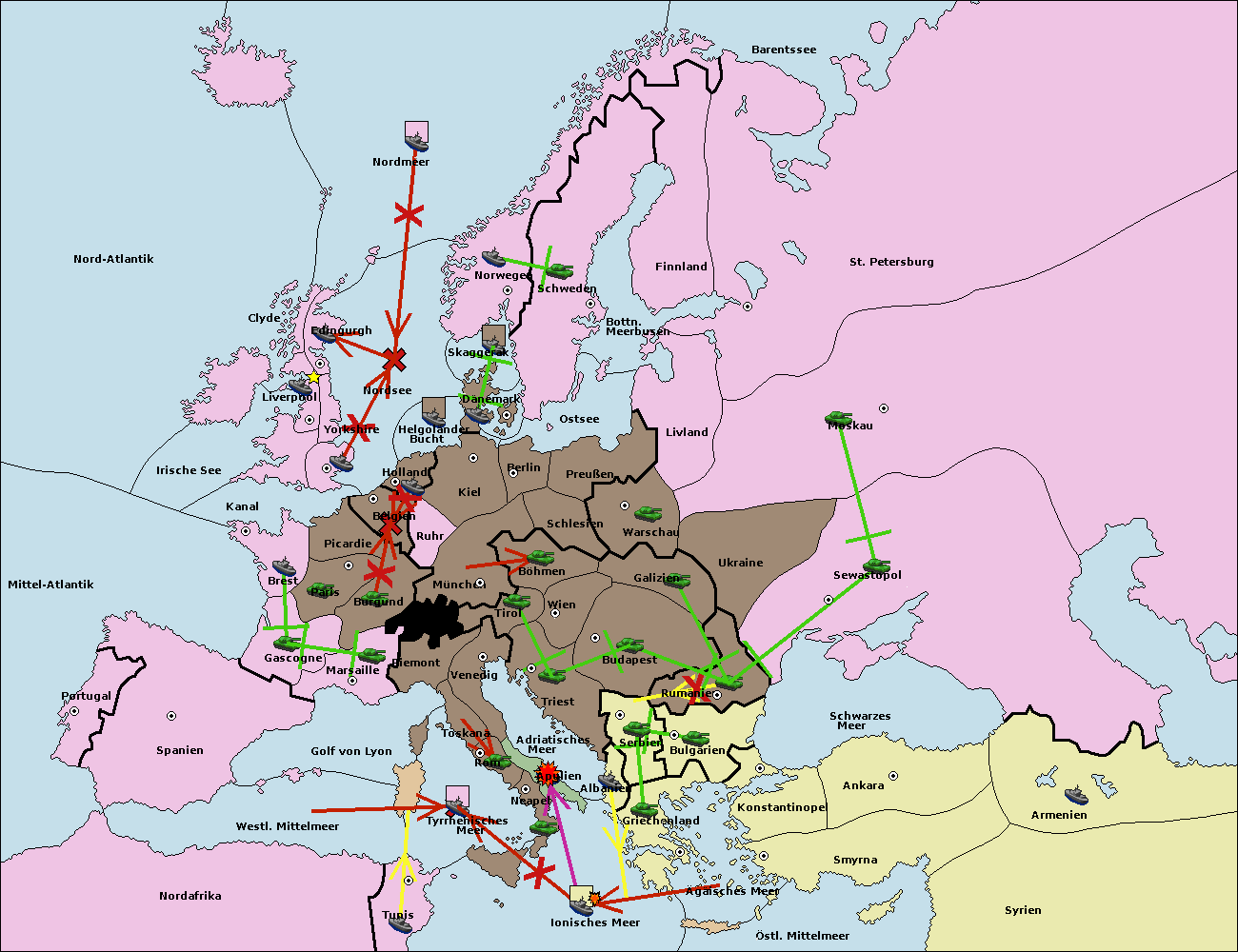 • Die Flotte in Konstantinopel support hold nach Bulgarien.
