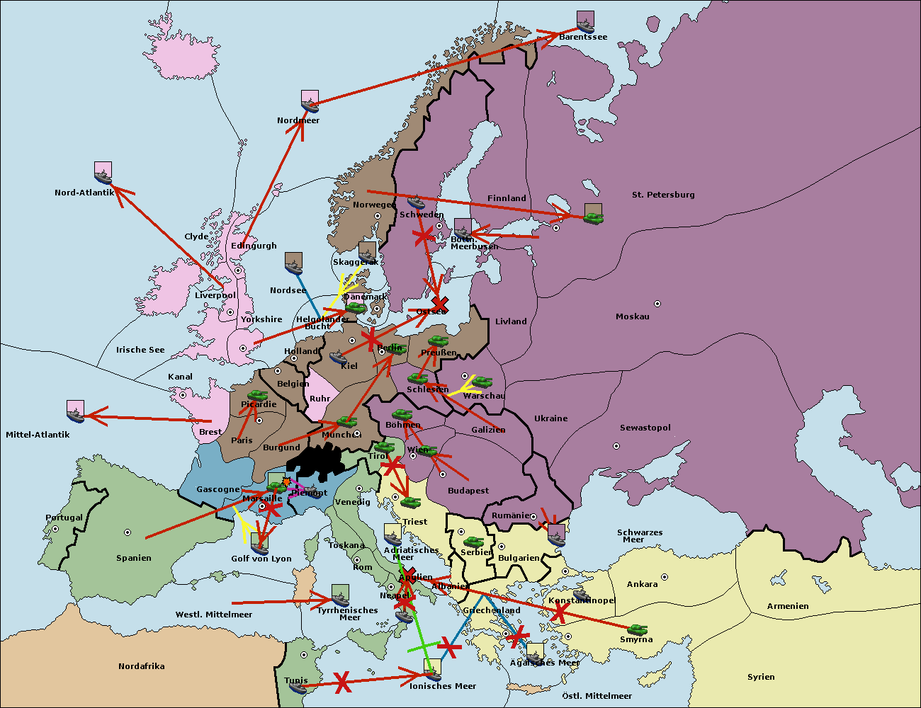 • Die Armee in Piemont support move nach Marseille von Tunis.