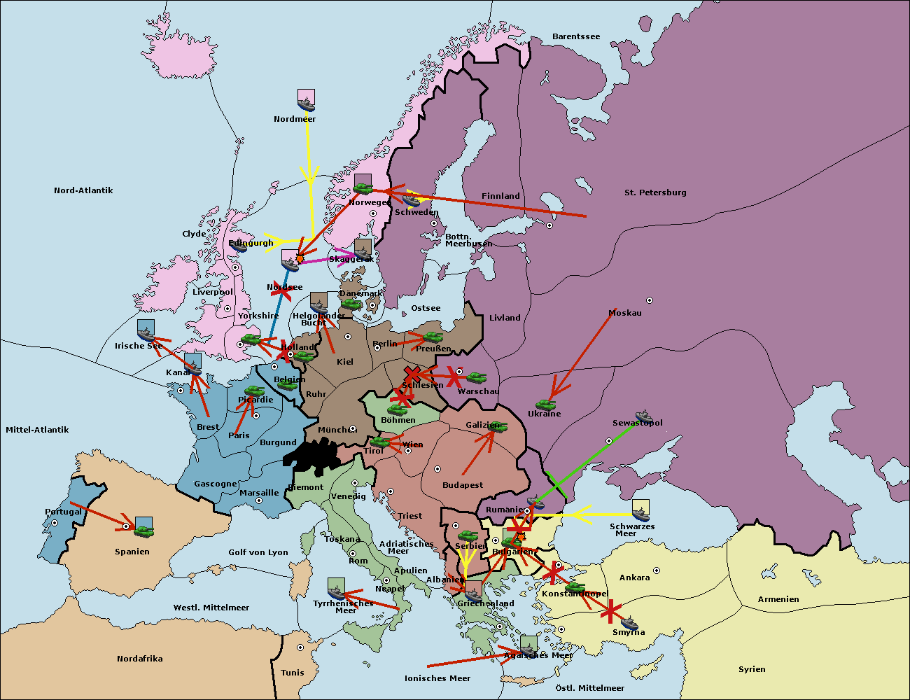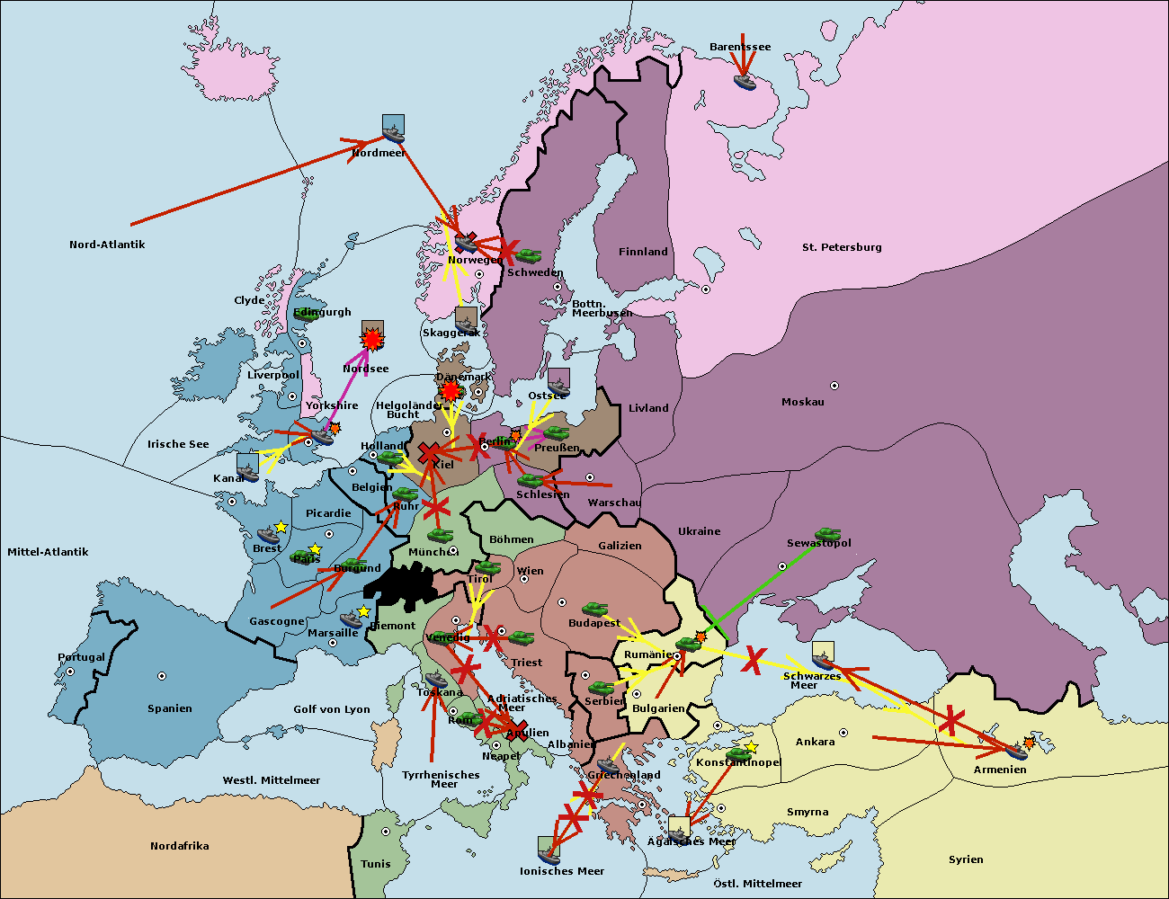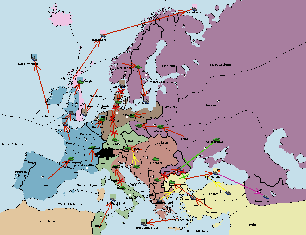 • Die Armee in Bulgarien wird zerstörtFlotte in Bulgarien gebaut.