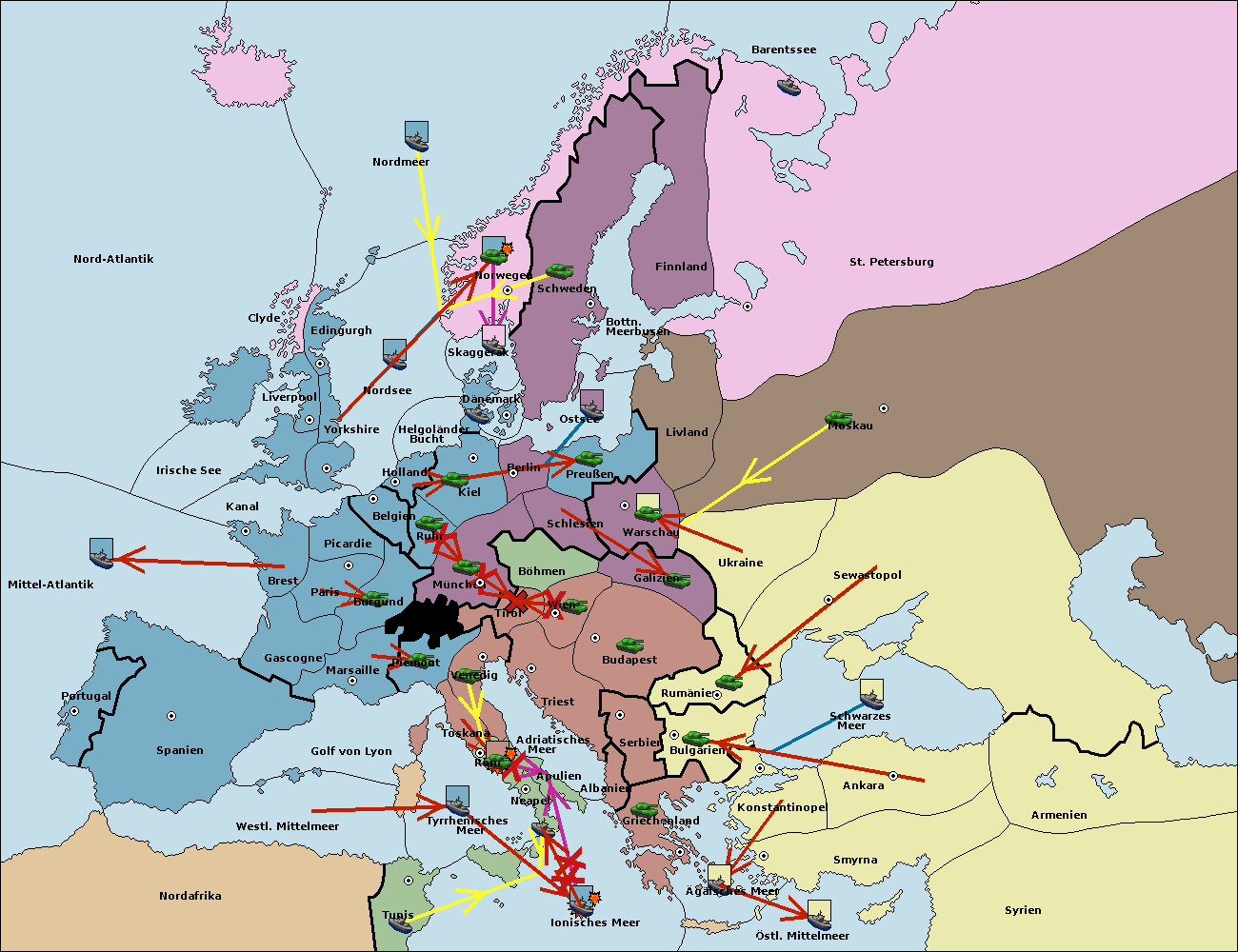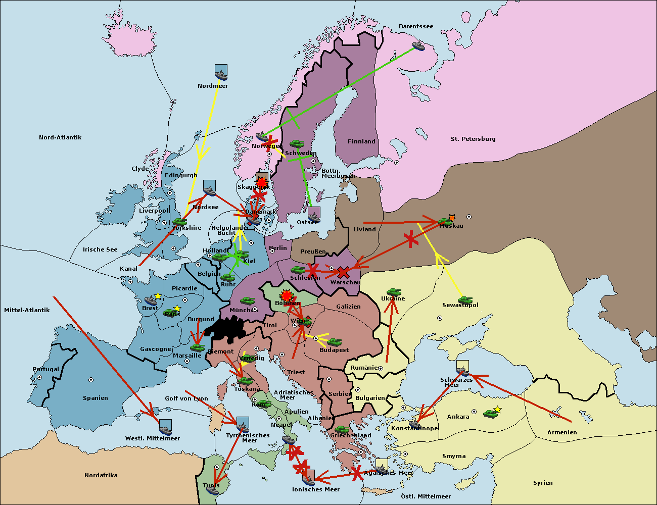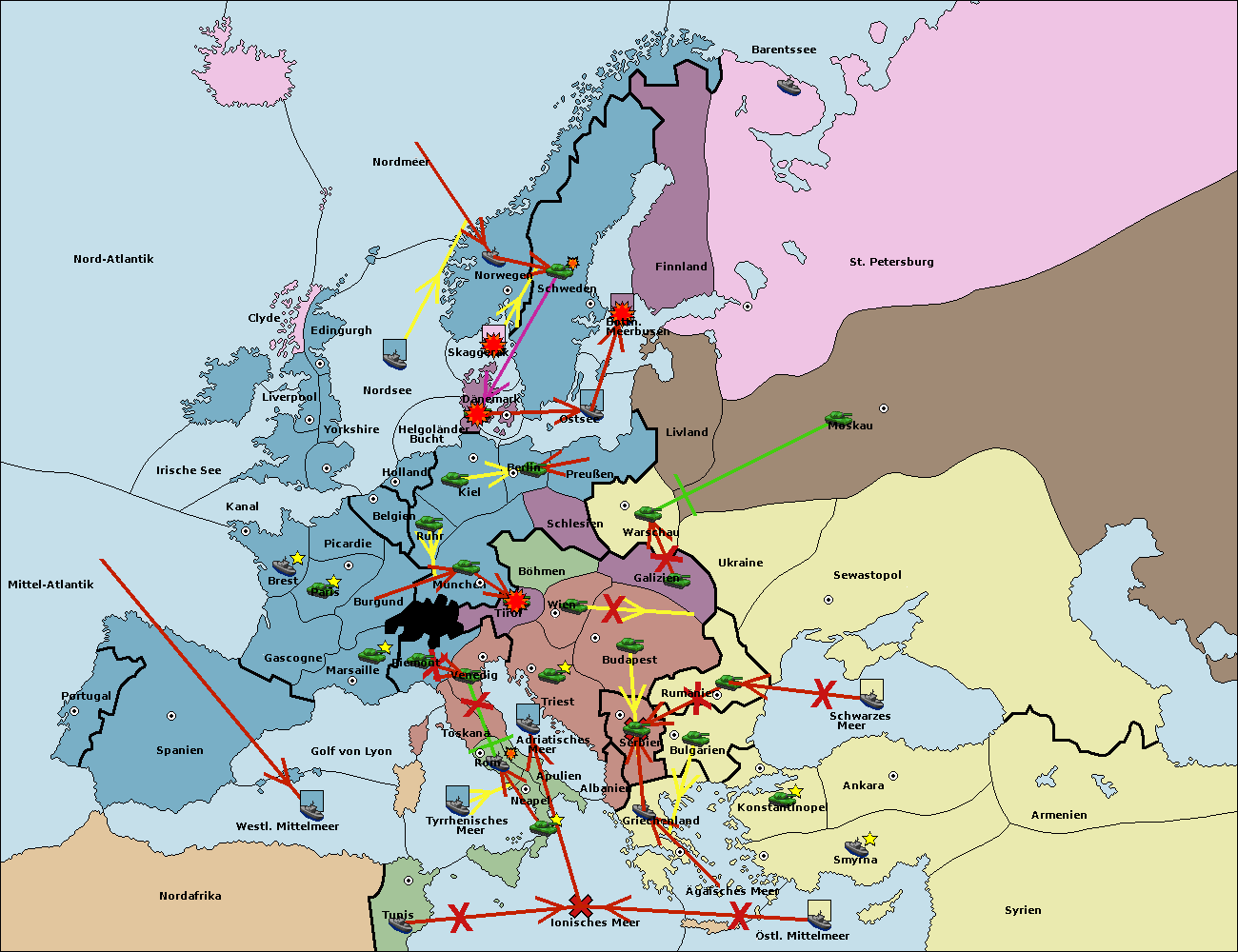 • Die Armee in Bulgarien wird zerstörtFlotte in Bulgarien gebaut.
