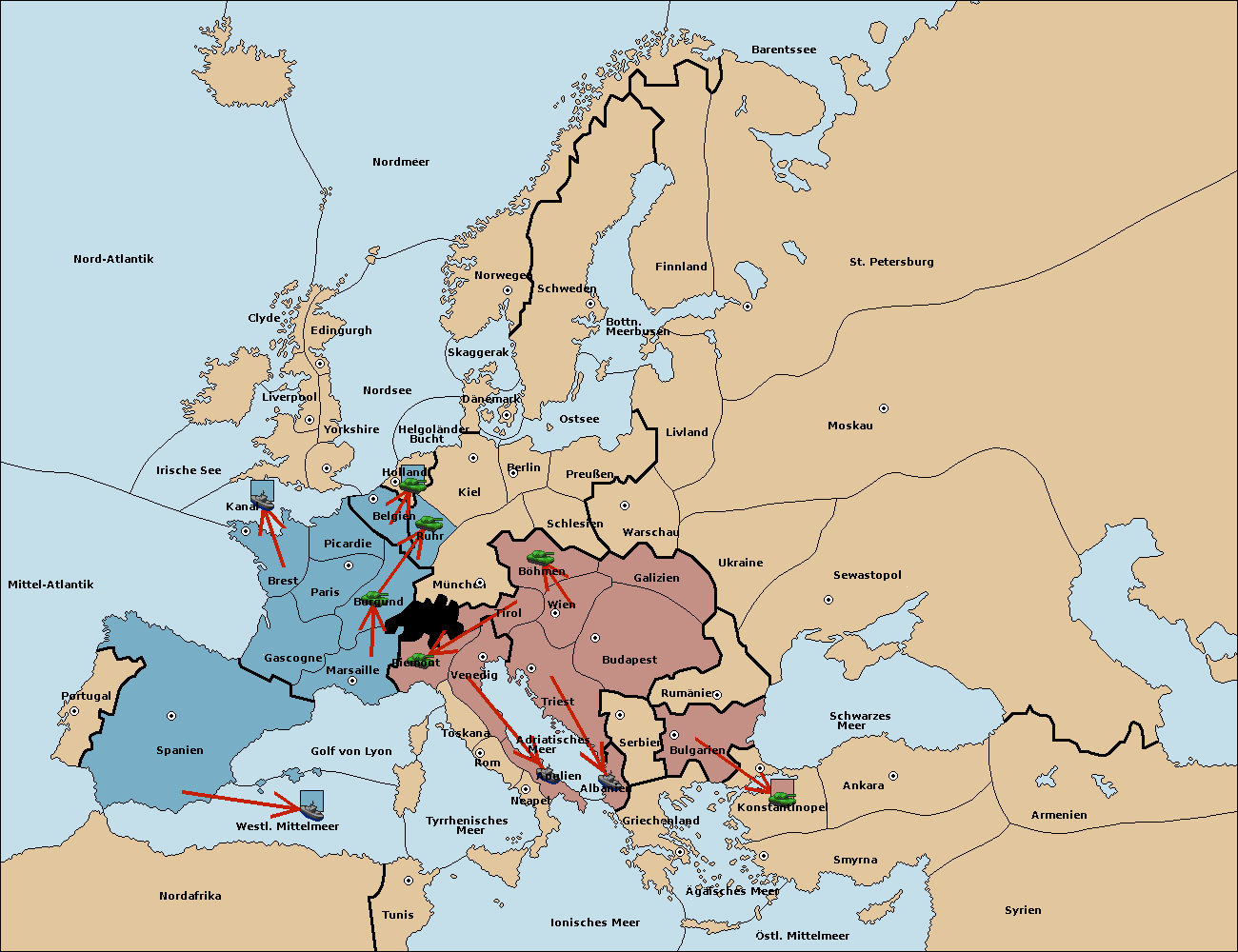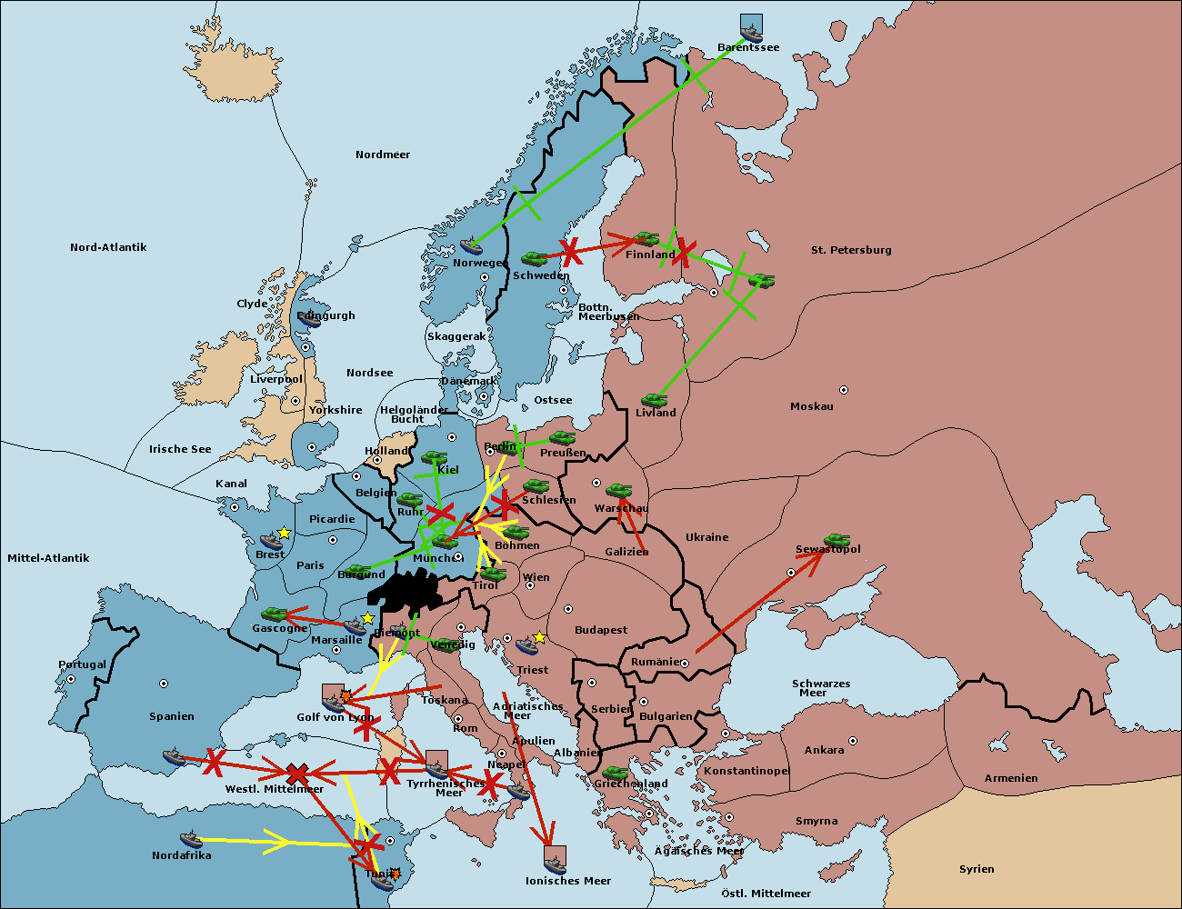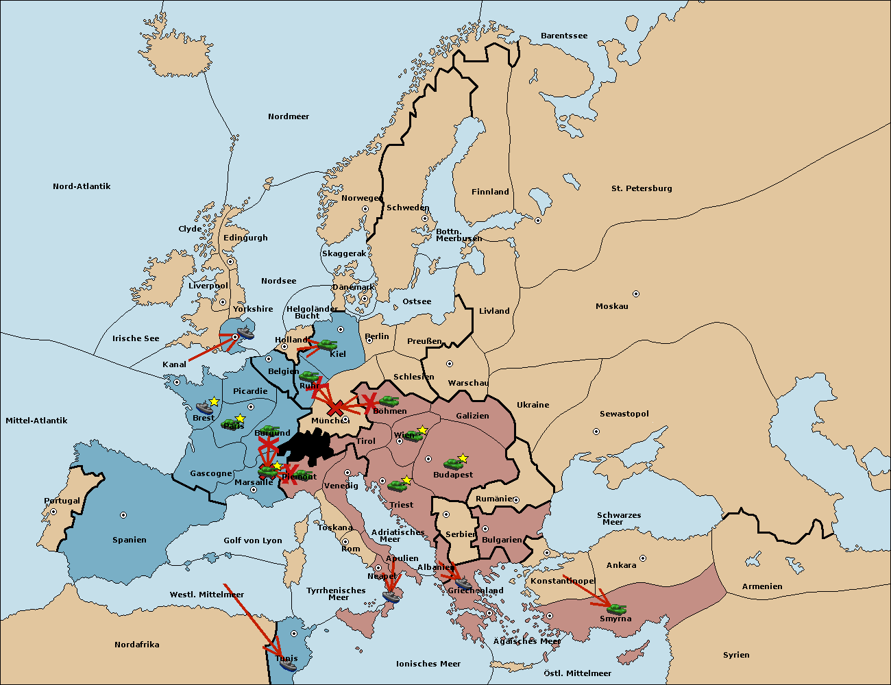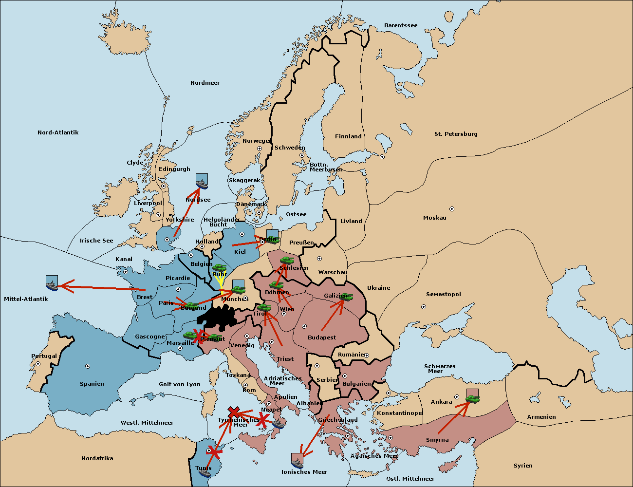 • Die Flotte in Nord Afrika support move nach Tunis von westl. Mittelmeer.