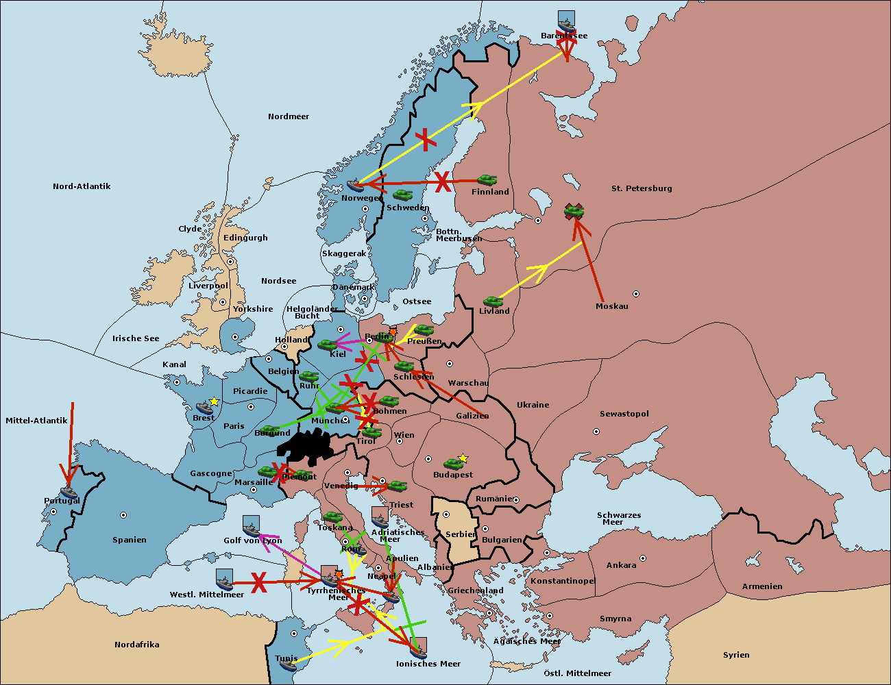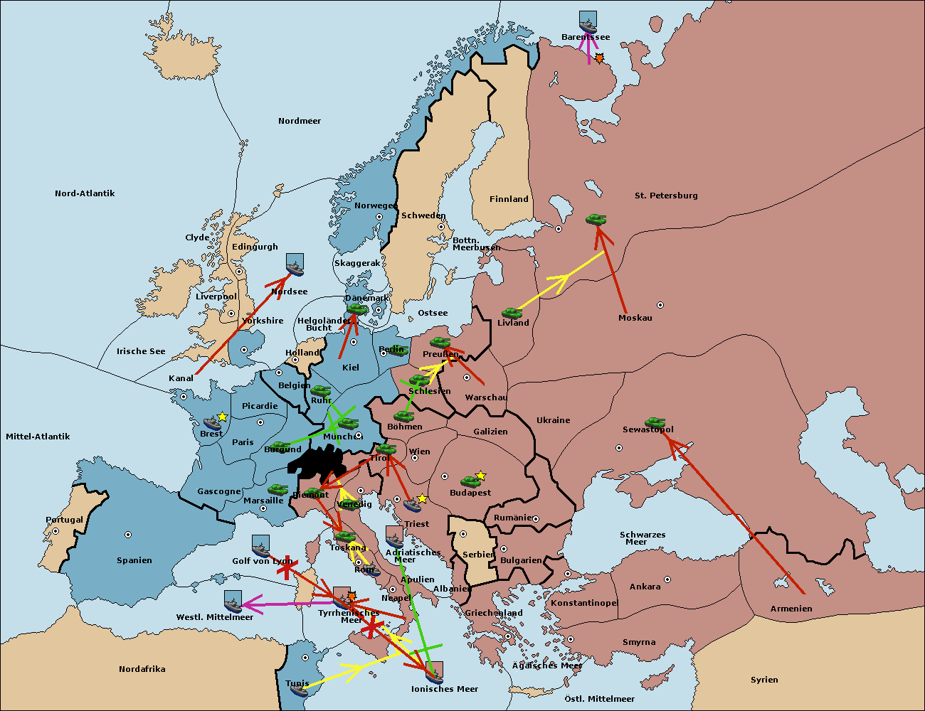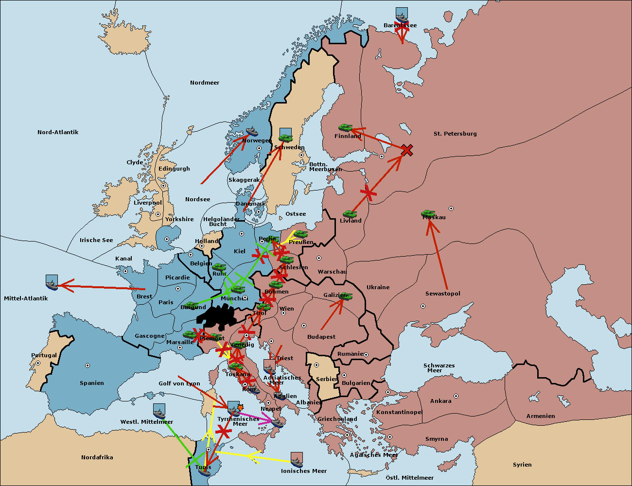 • Die Flotte in Nord Afrika support move nach Tunis von westl. Mittelmeer.