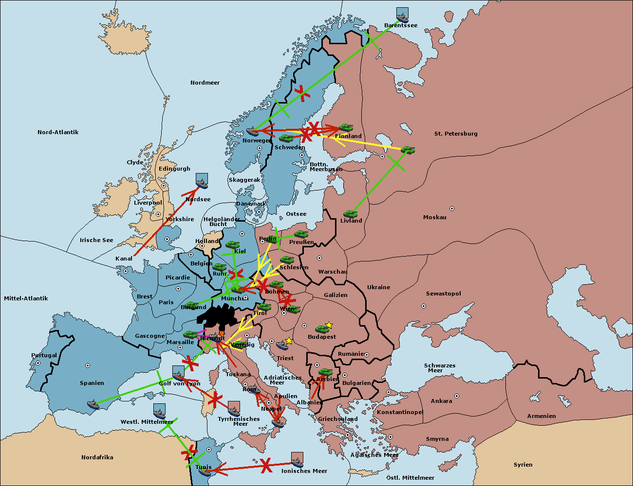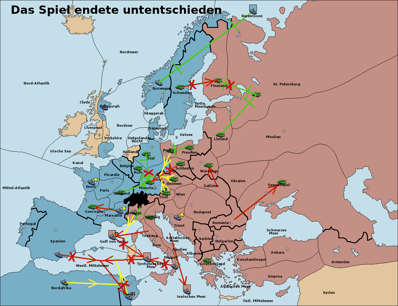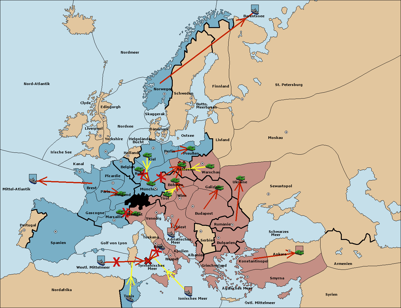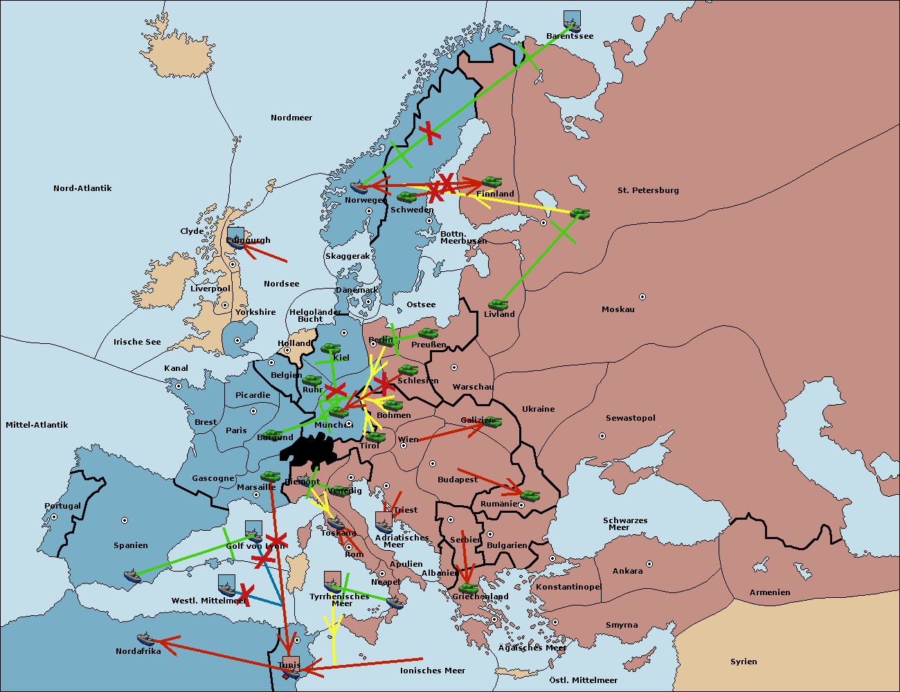 • Die Flotte in Nord Afrika support move nach Tunis von westl. Mittelmeer.