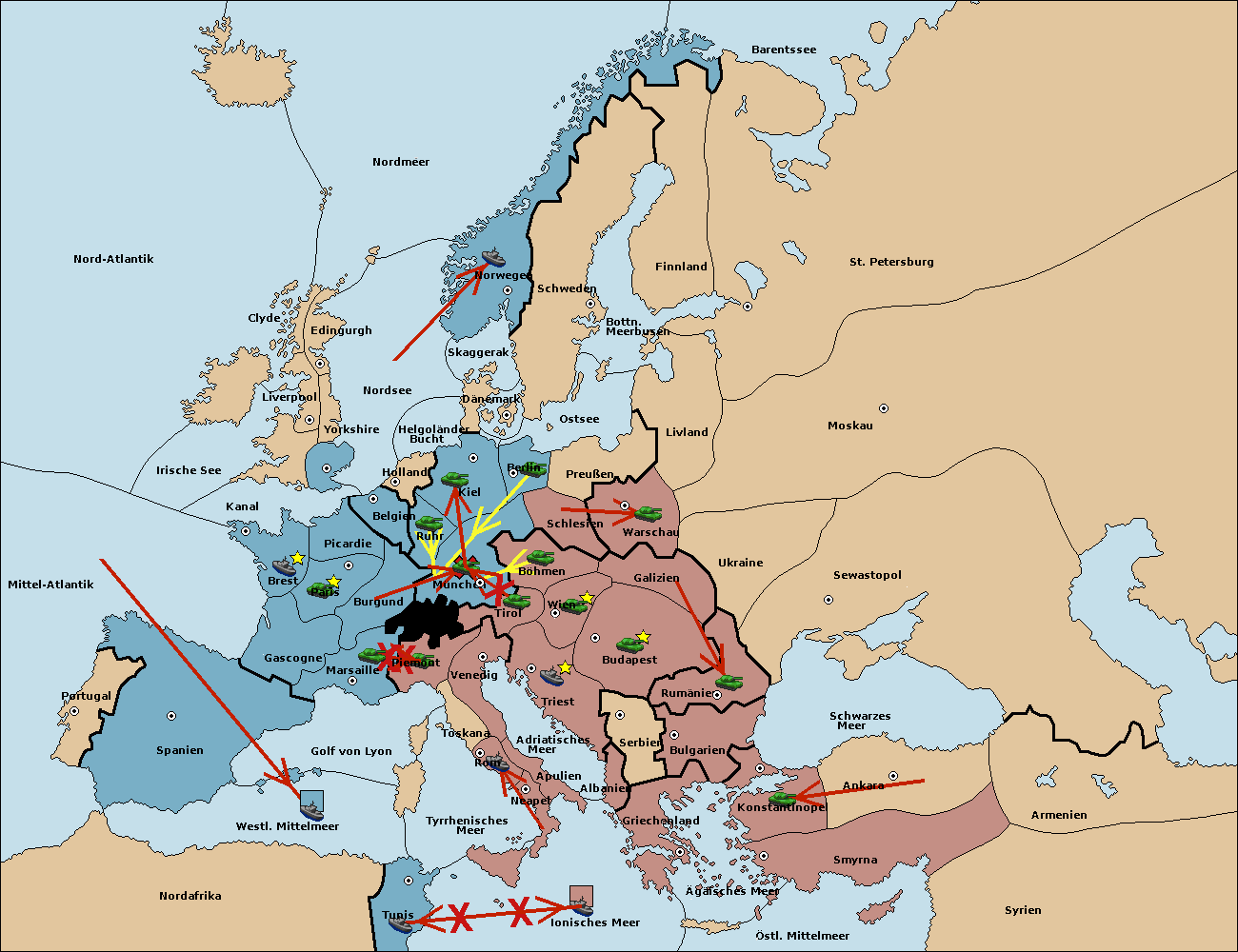 • Die Armee in Kiel support move nach München von Burgund.